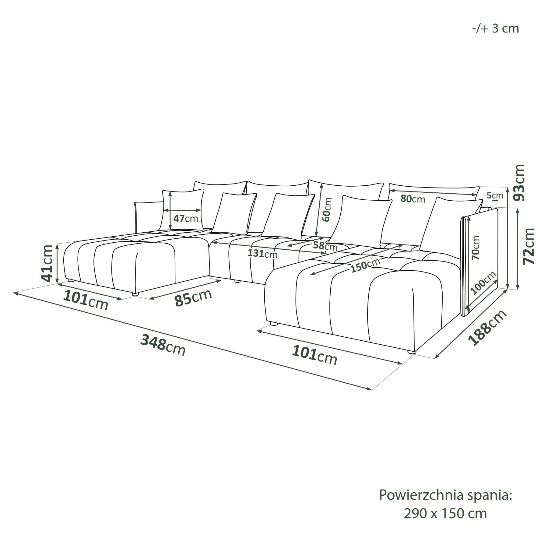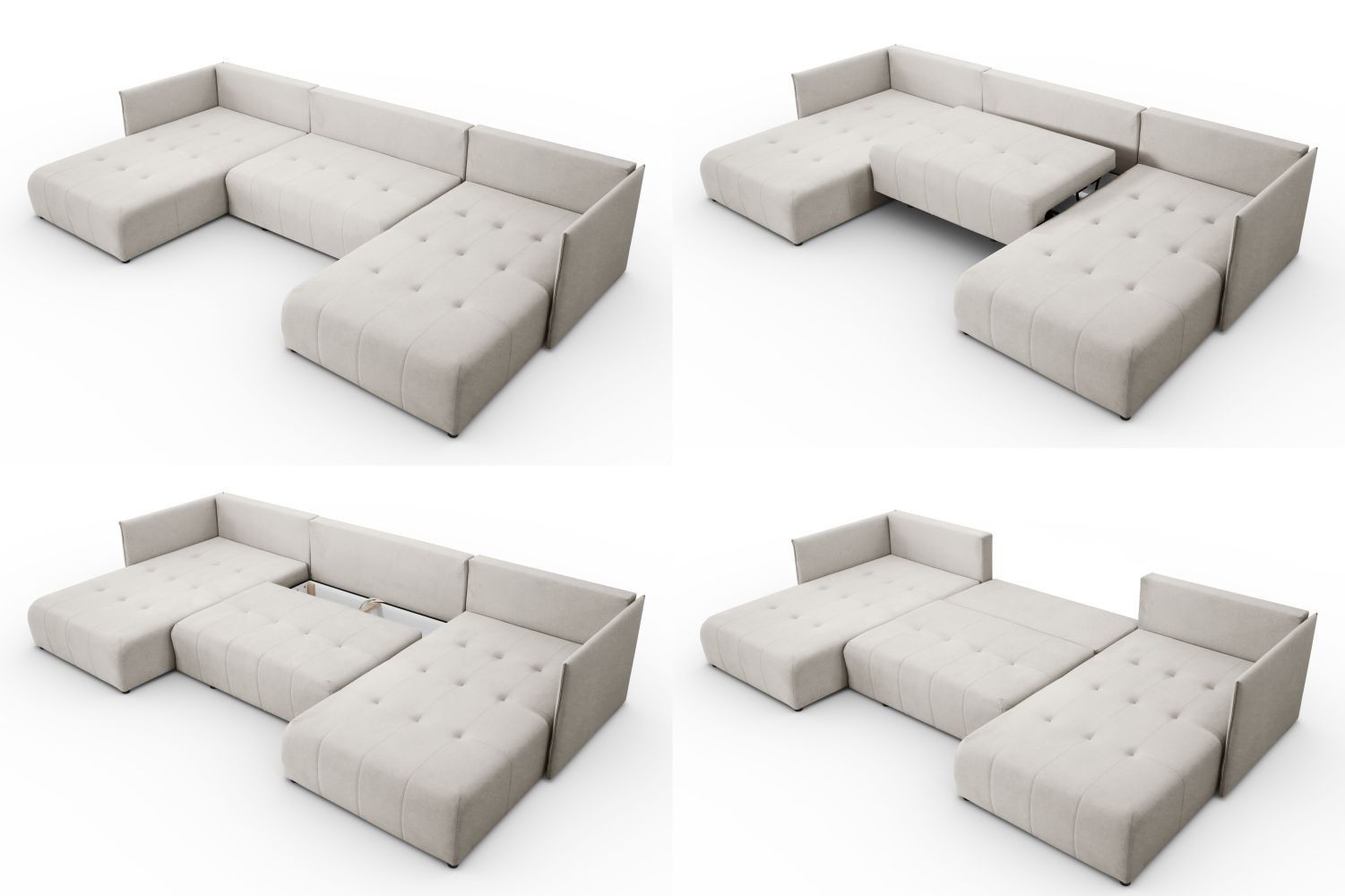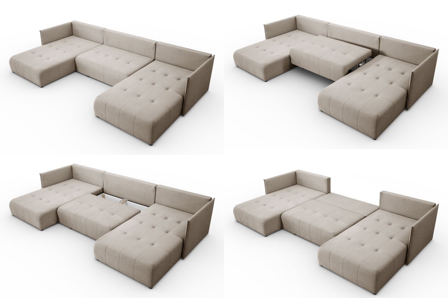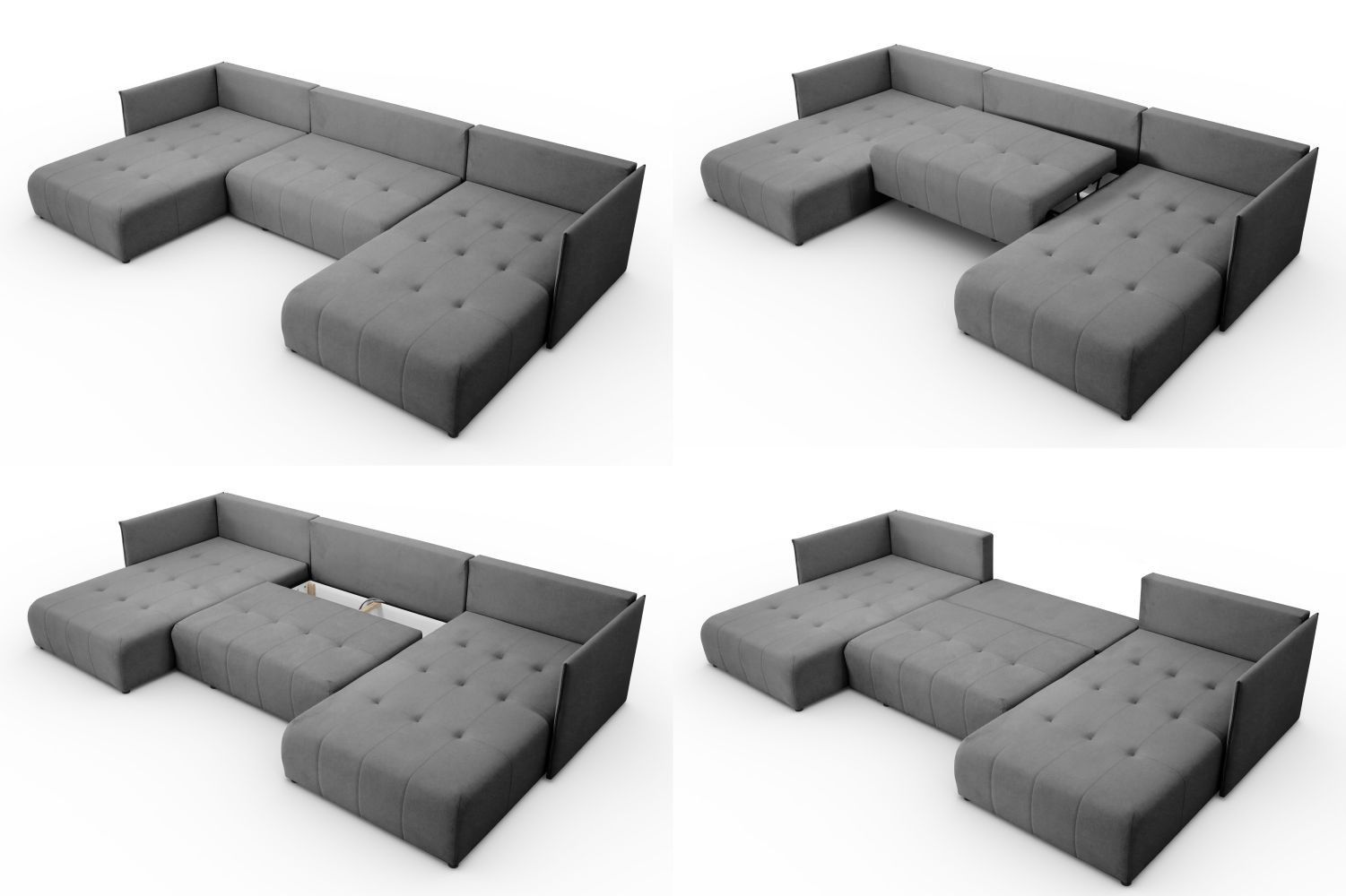 Ecksofa U Form Hanna 348x188cm Schlaffunktion Bettkasten 5 Sitzer Big Sofa Couch