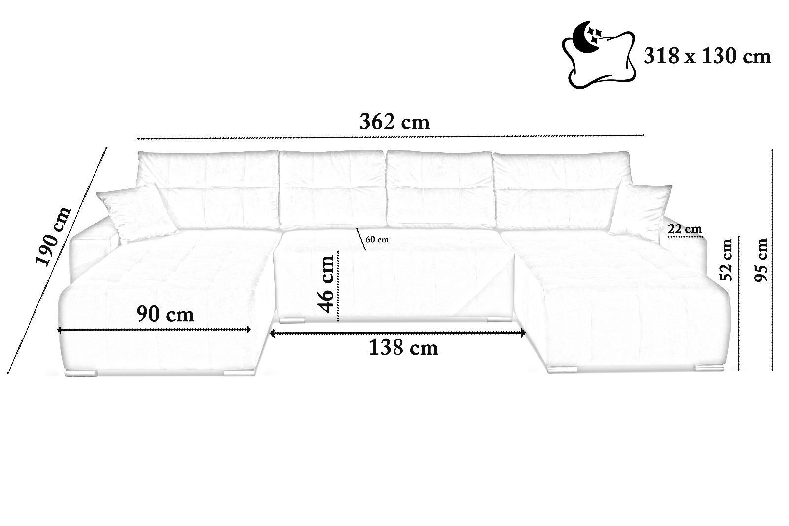 318 cm x 130 cm