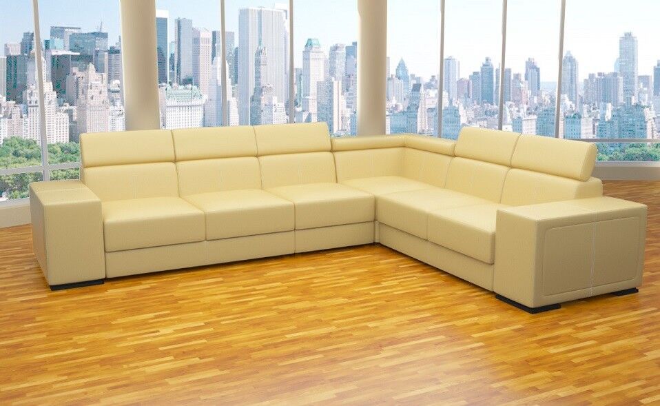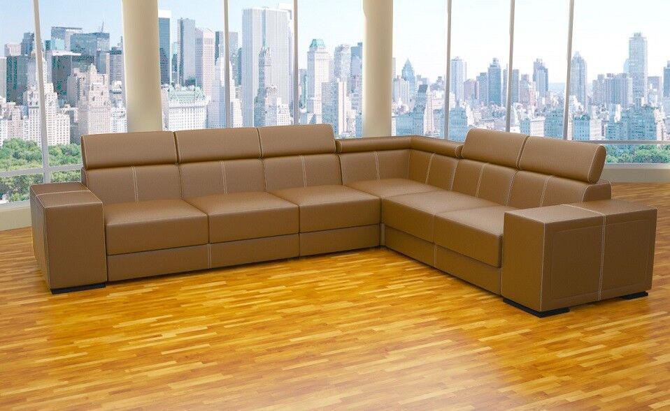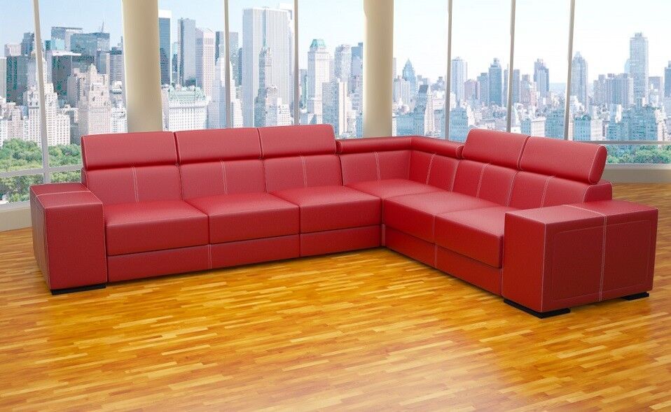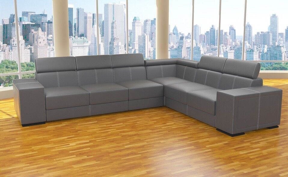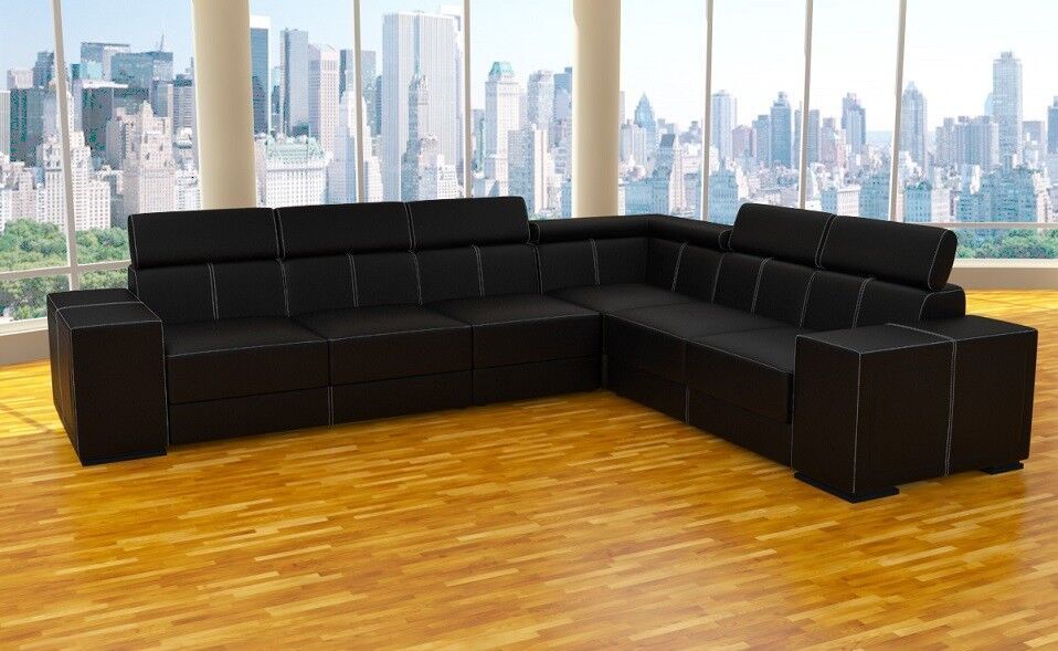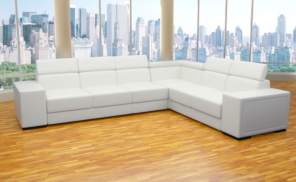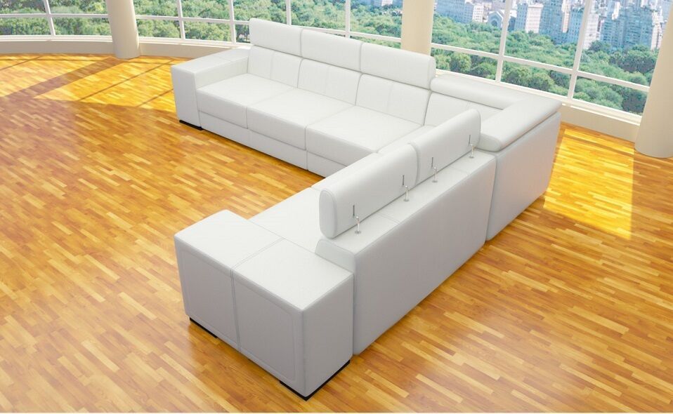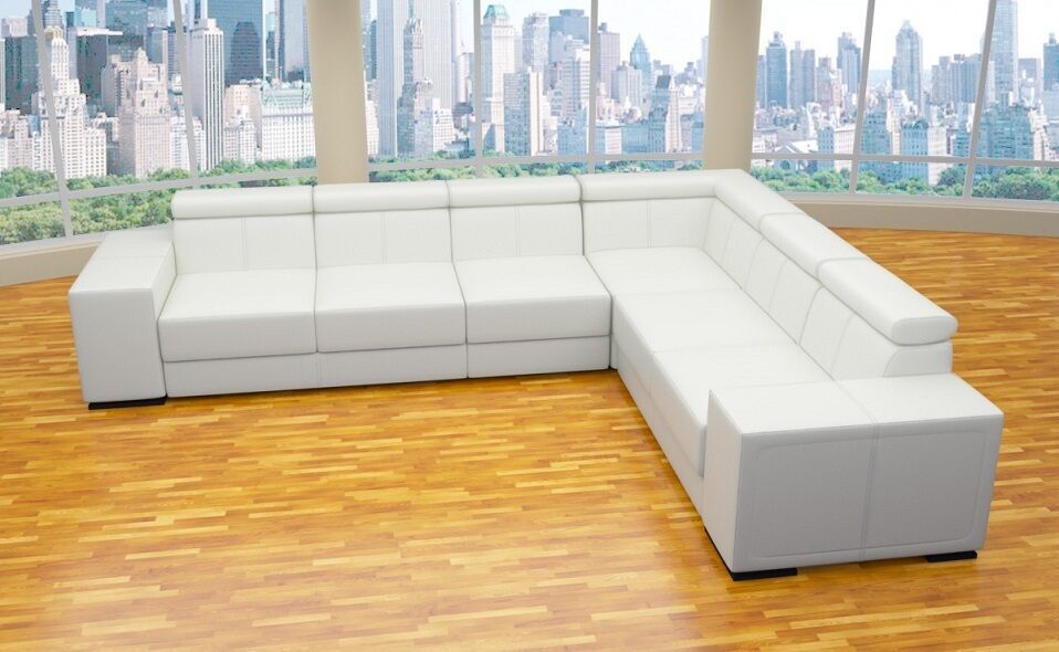 Ecksofa WEISS Wohnlandschaft Modular L-FORM Nackenstützen LEDER LOOK FARBEN !