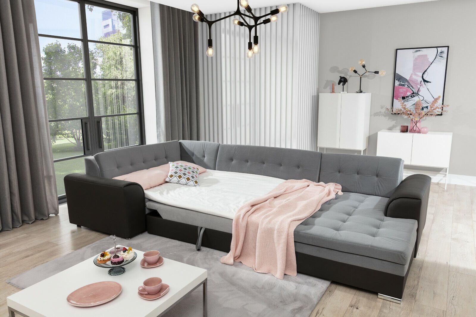 Ecksofa XXL 340CM Bettfunktion Wohnlandschaft Schlafsofa U-FORM Ottomane Lagernd