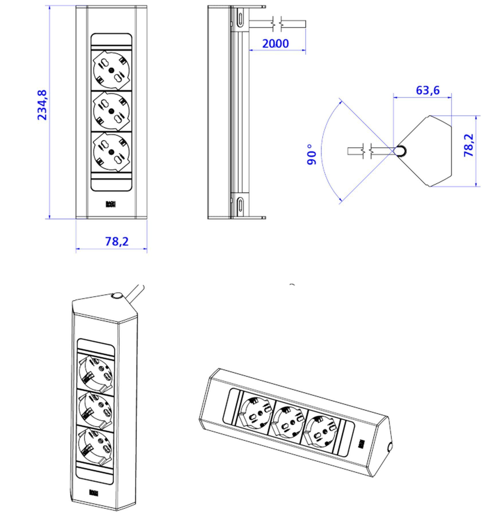 Ecksteckdose Casia 2 Küchensteckdose 3-fach Steckdosenleiste Küche Schreibtisch