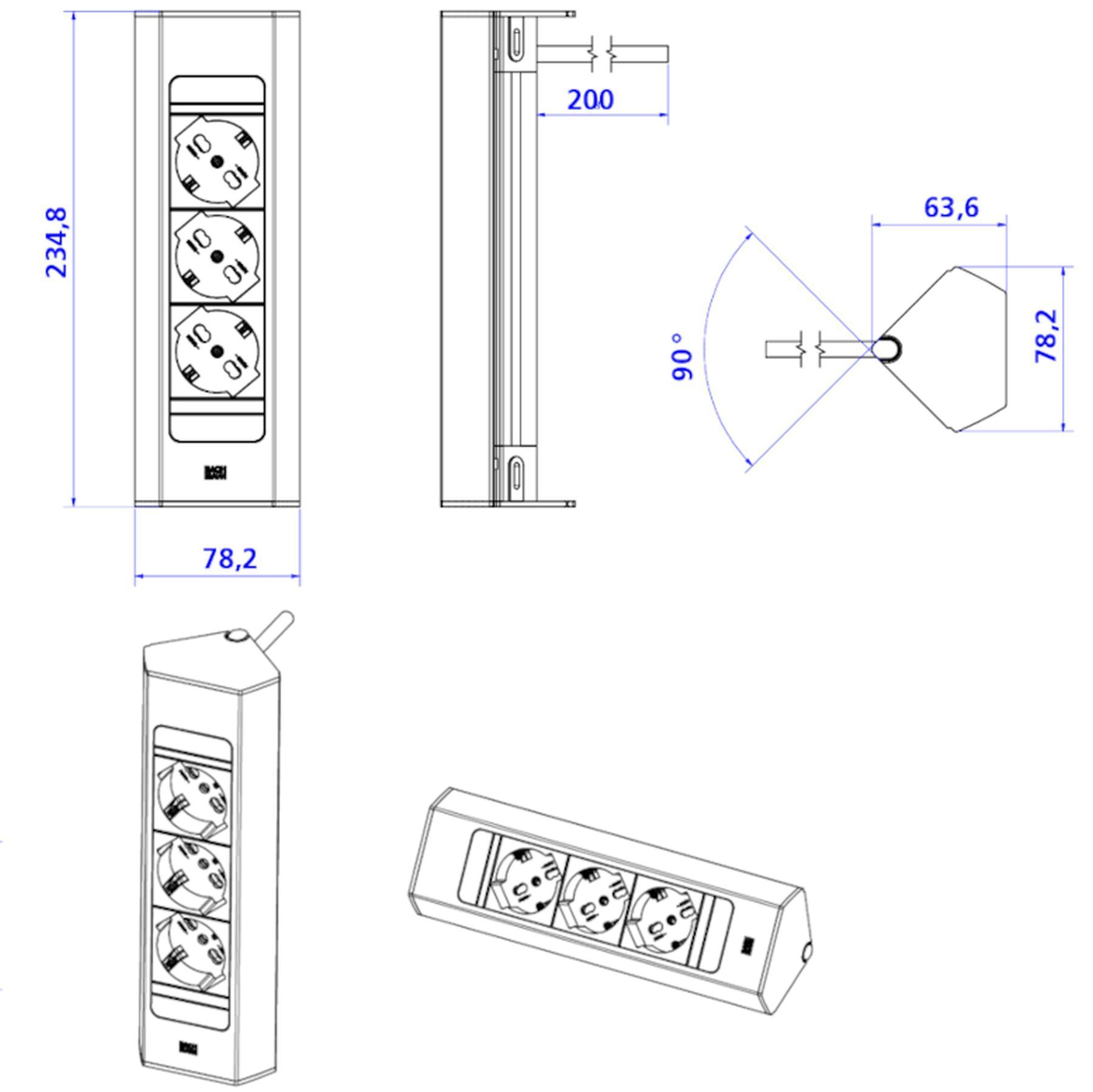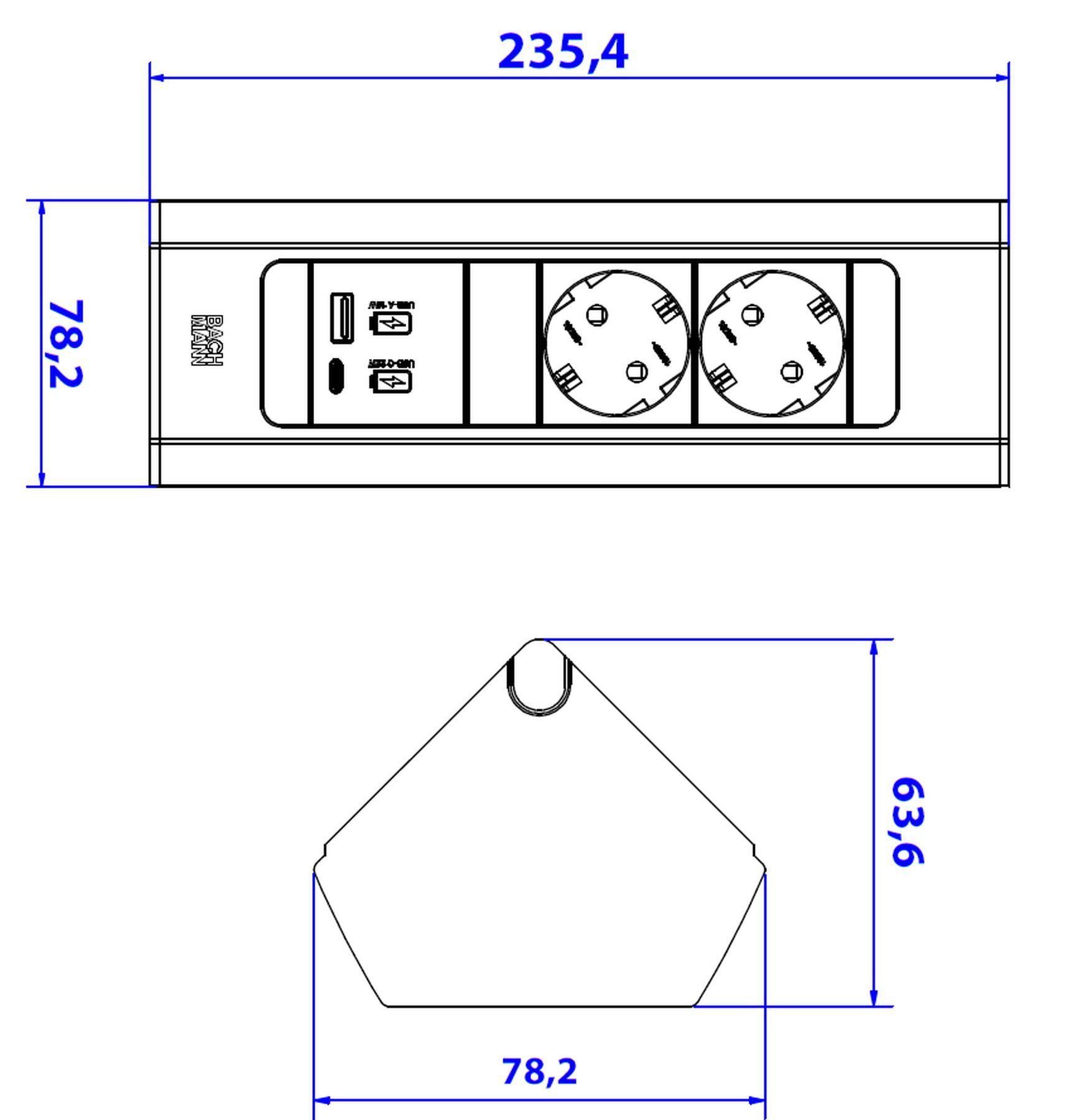 Ecksteckdose Casia Küchensteckdose Schwarz eloxiert Kombisteckdose USB A & C