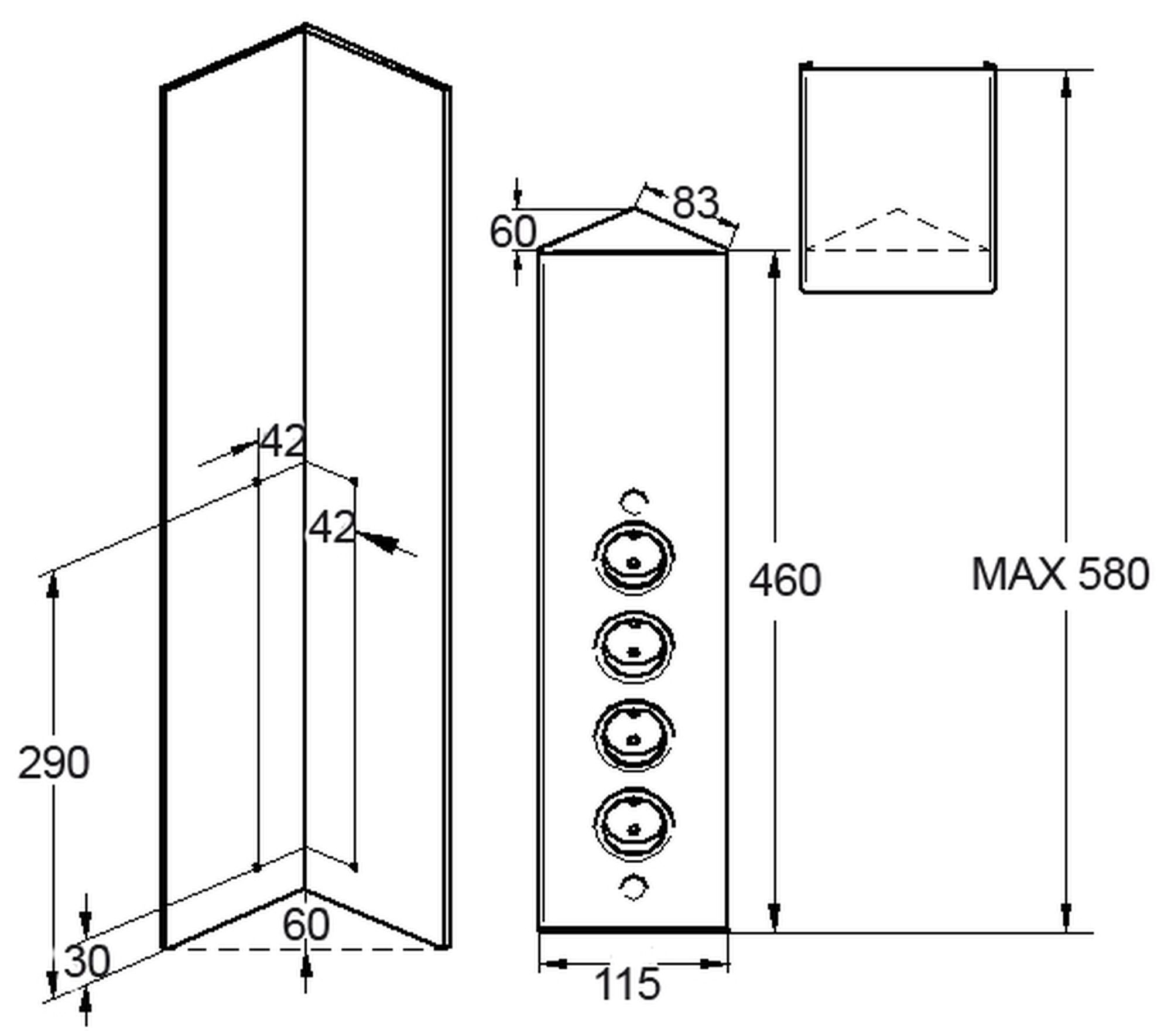 Ecksteckdose, Küchensteckdose Riva mit Schalter, 3-fach Steckdose