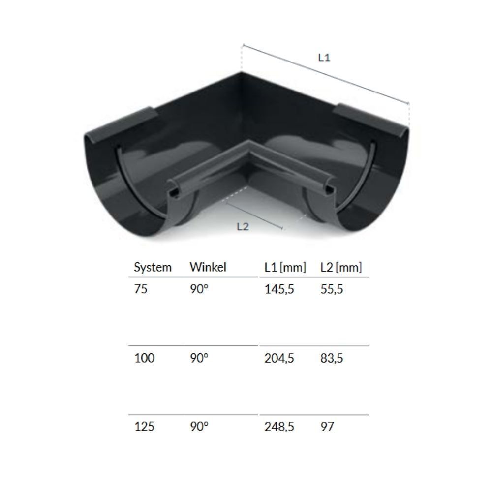Eckstück Innen 90° graphit System 100