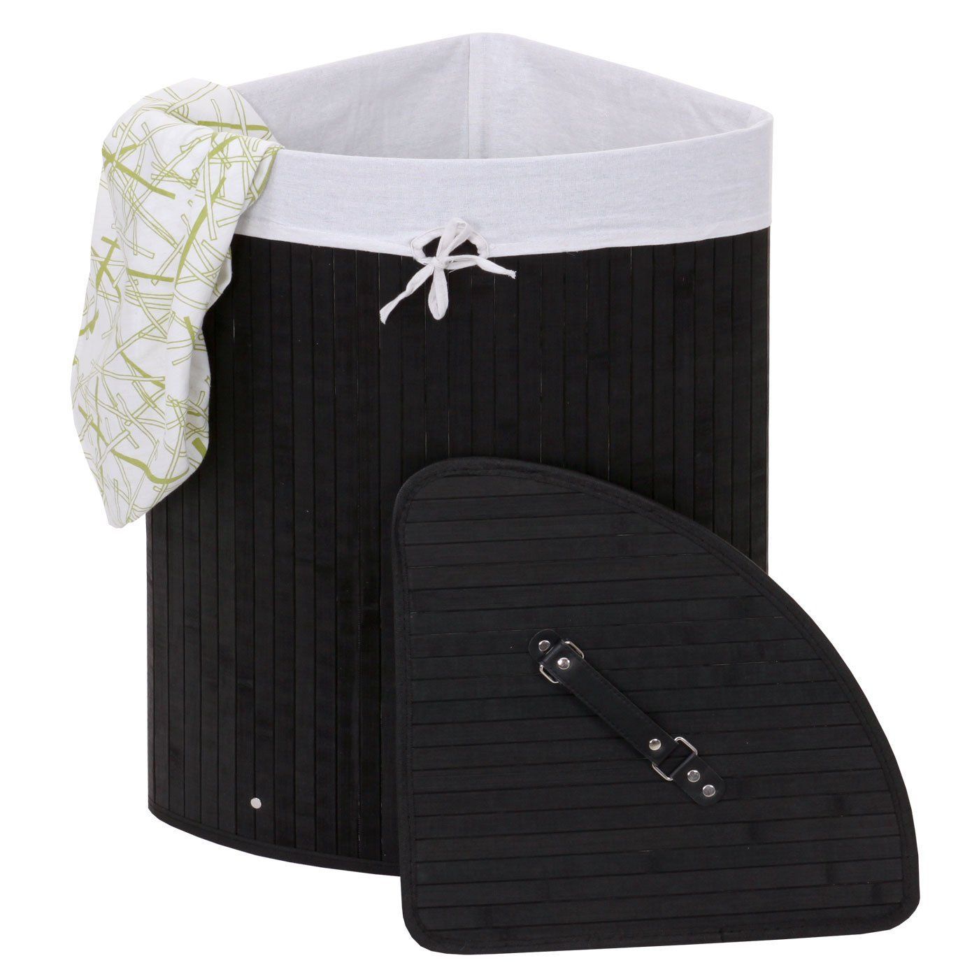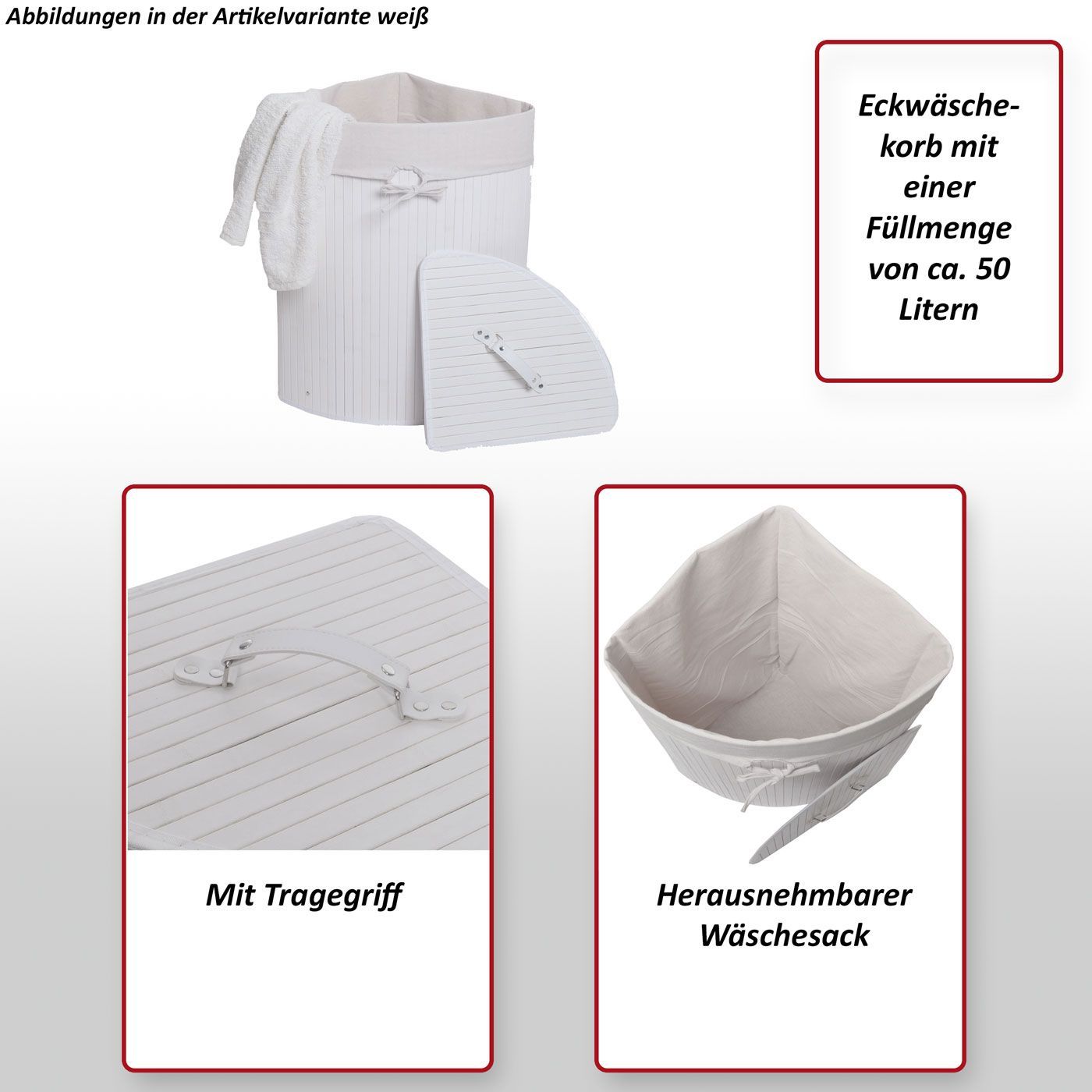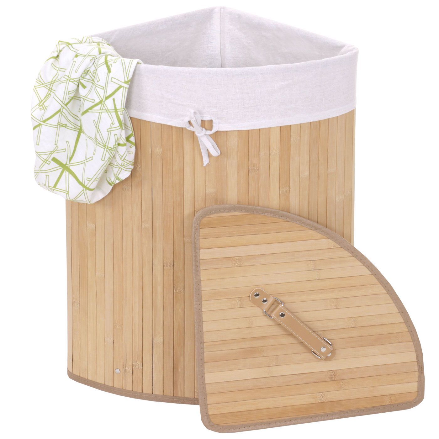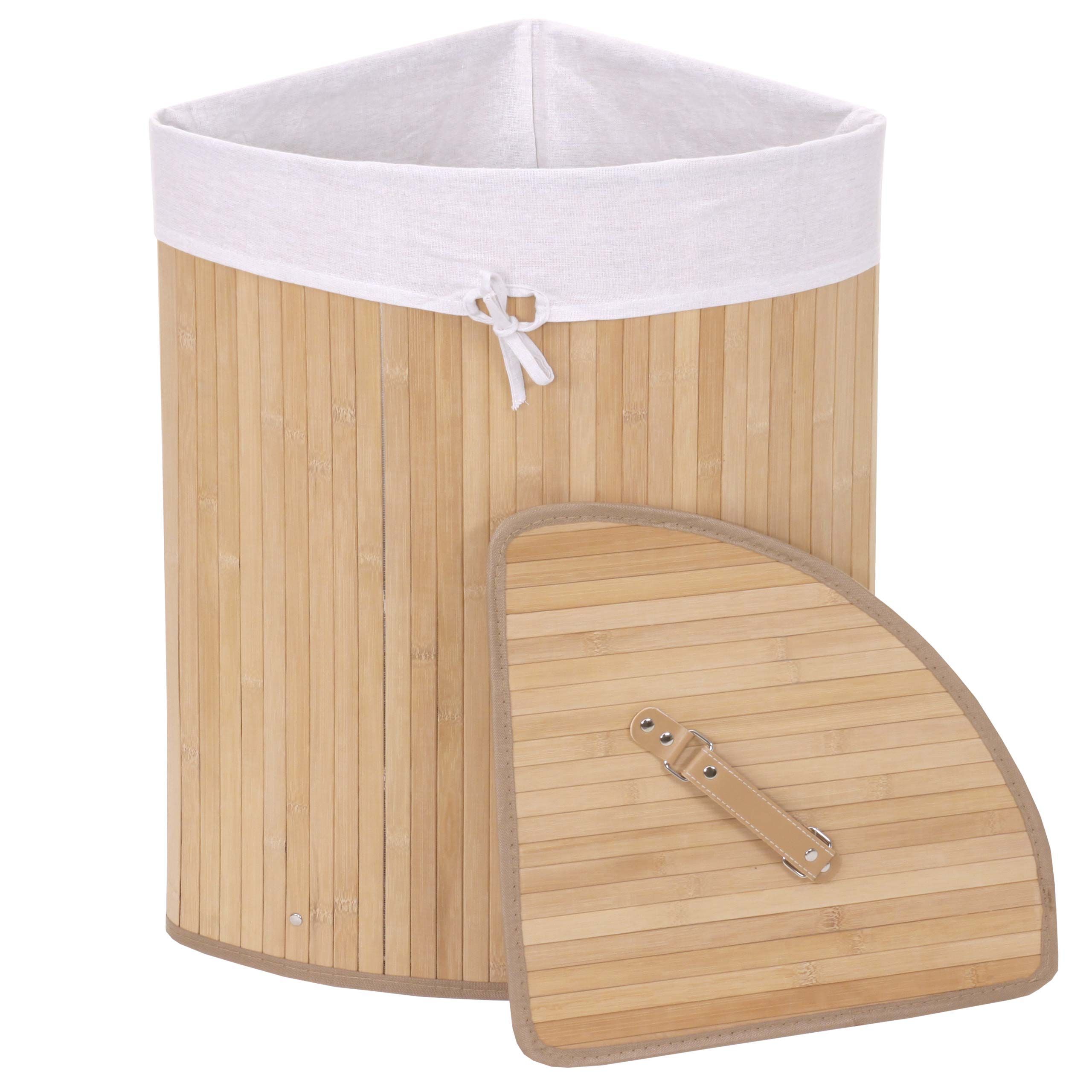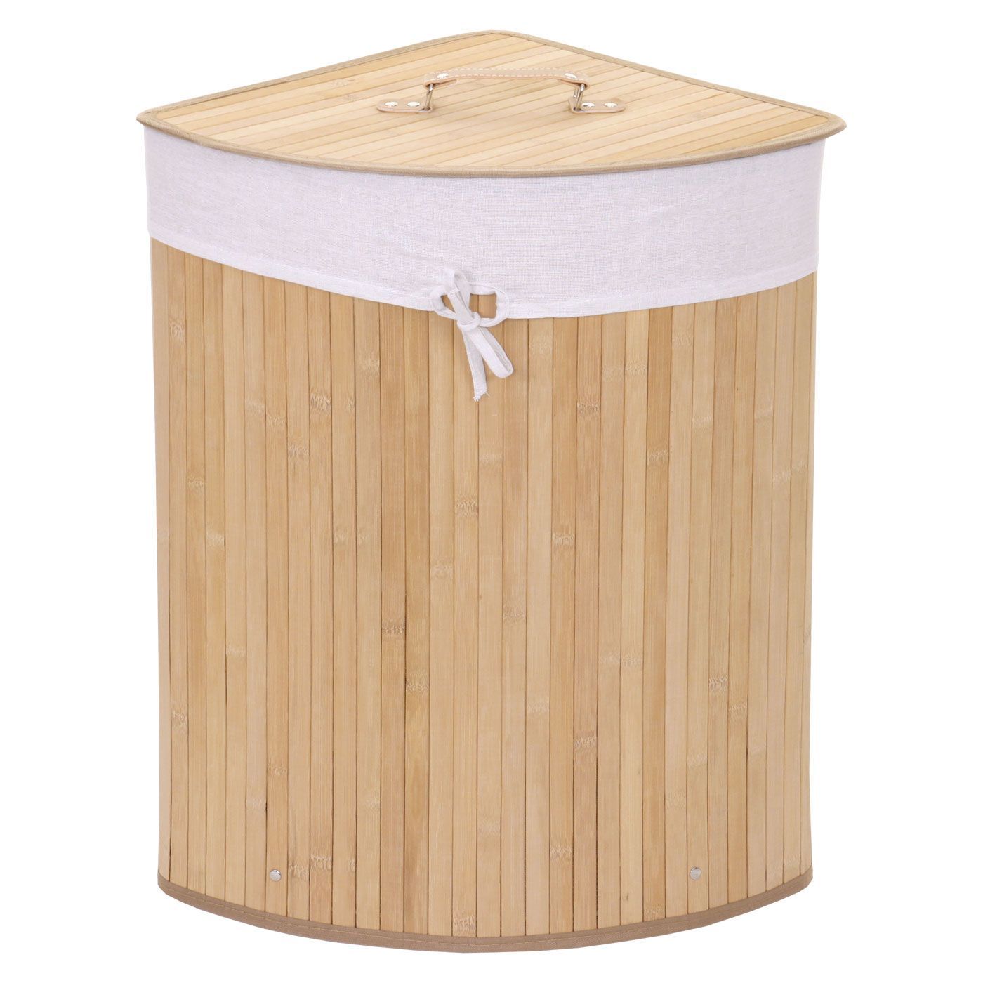 Mendler Eckwäschekorb HWC-C21, Laundry Wäschebox Wäschesammler, Bambus 61x48x35cm 50l