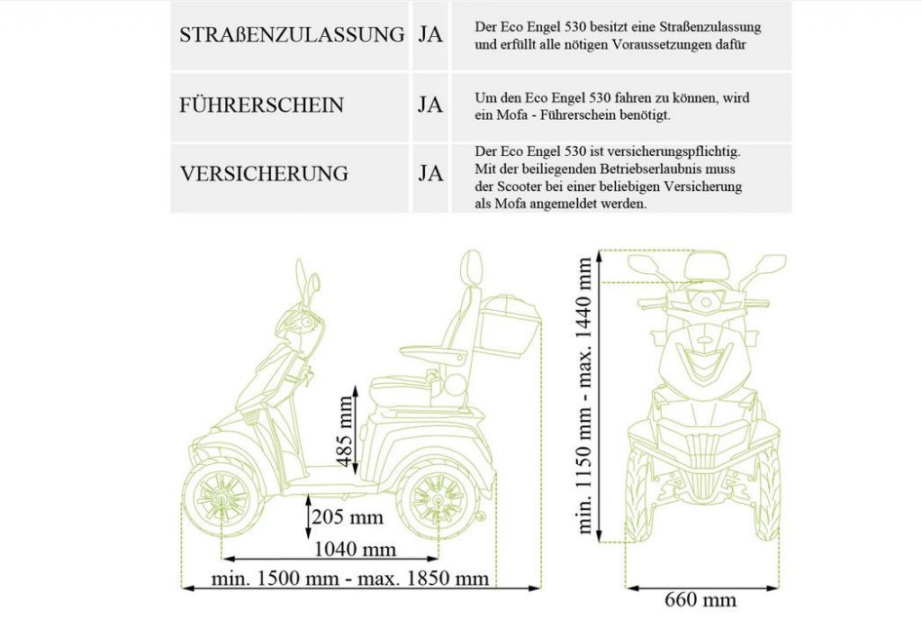 • Für E-Scooter wird Führerschein der Klasse AM, B, BE, A1, A2, A benötigt.