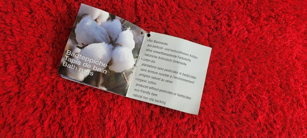 Eco True Rot Badteppich Badematte Badverleger 60x90 cm. 100% Bio-Baumwolle