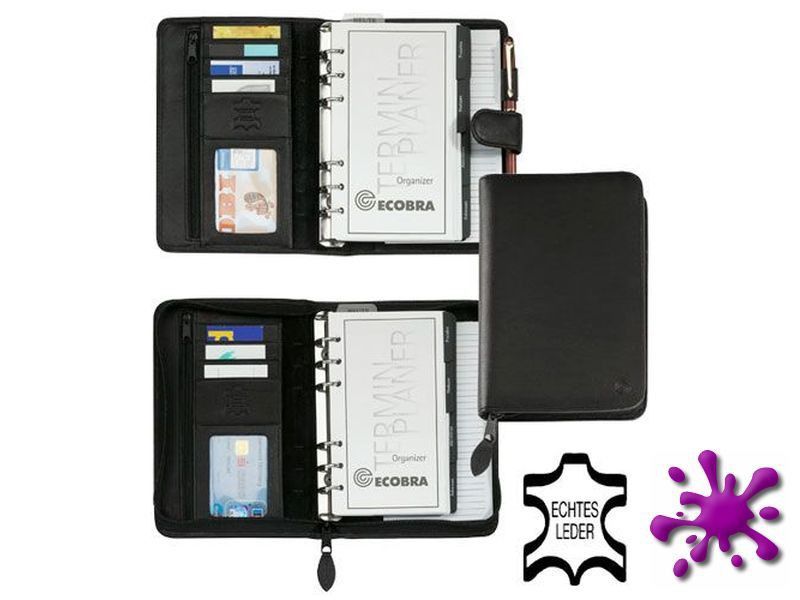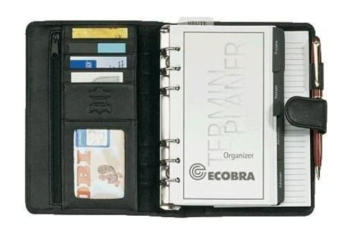 Ecobra Organizer schwarz DIN A6, eches Leder, mit Druckknopf, 2. WAHL