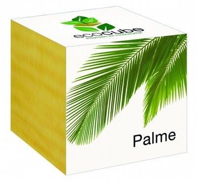 Pflanze im Holzwürfel - Palme Beim Ecocube handelt es sich um einen Würfel aus Holz. Der Würfel ist mit mit Samen und Nährstoffen gefüllt.