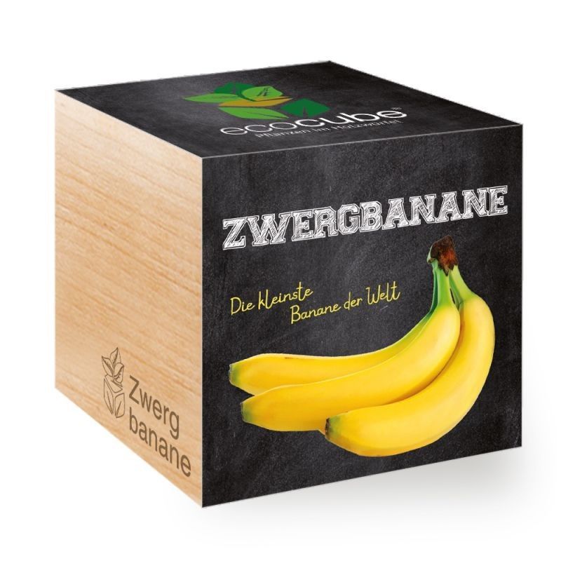 Ecocube Pflanze im Holzwürfel "Zwergbanane" - Die perfekte Geschenkidee
