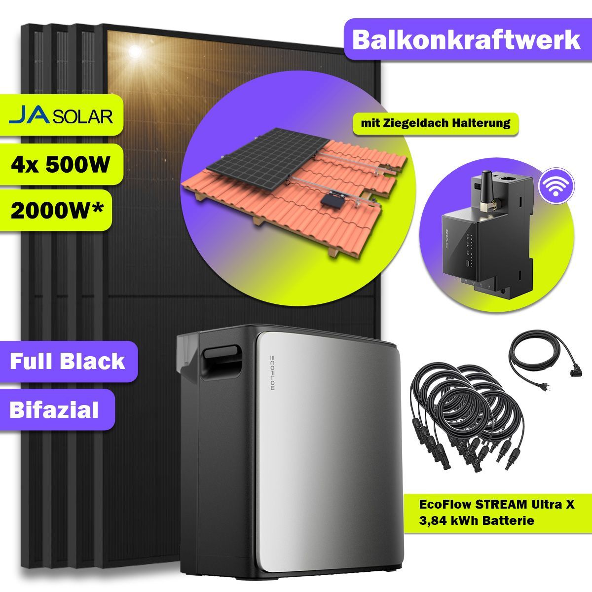EcoFlow STREAM Ultra X 3840 Wh 2000W Balkonkraftwerk Komplettset inkl. Ziegel