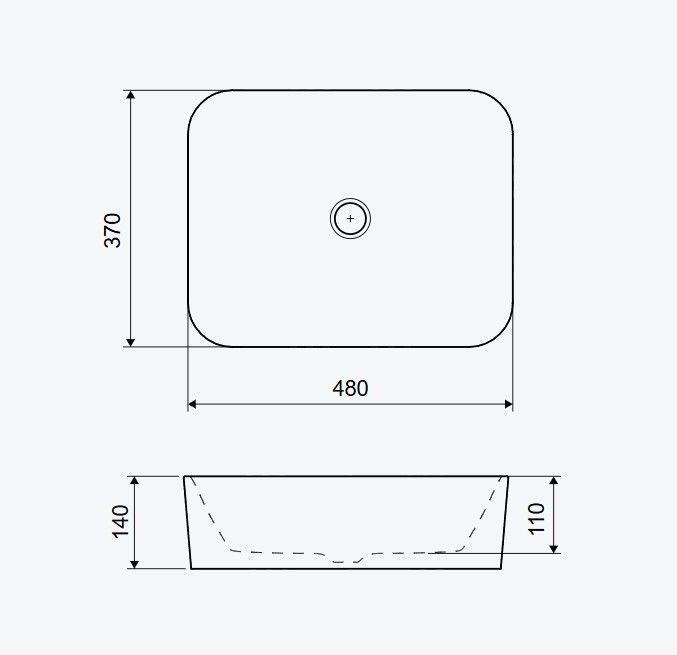 ECOLAM Aufsatzwaschbecken rechteckig 48x37 Keramikwaschbecken Aufsatzwaschtisch Forka