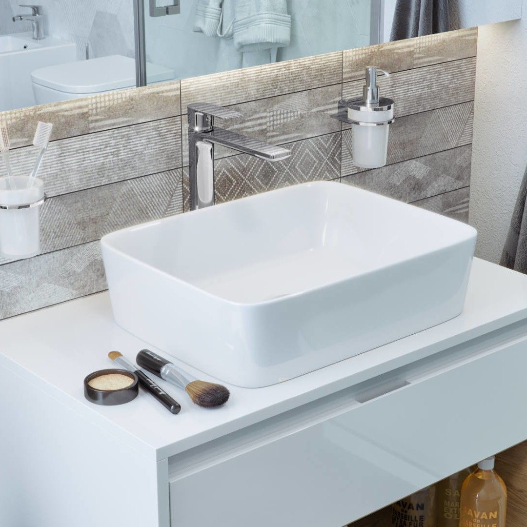 Dieses rechteckige Aufsatzwaschbecken vereint modernes Design mit funktionaler Eleganz. Das Modell Forka ist aus hochwertiger Keramik gefertigt – mit besonderer Sorgfalt für Details. Die universelle Form, das dezente und dennoch außergewöhnliche Design, die großzügige Beckenfläche und die interessante Gestaltung heben dieses Waschbecken deutlich von anderen Produkten auf dem Markt ab.