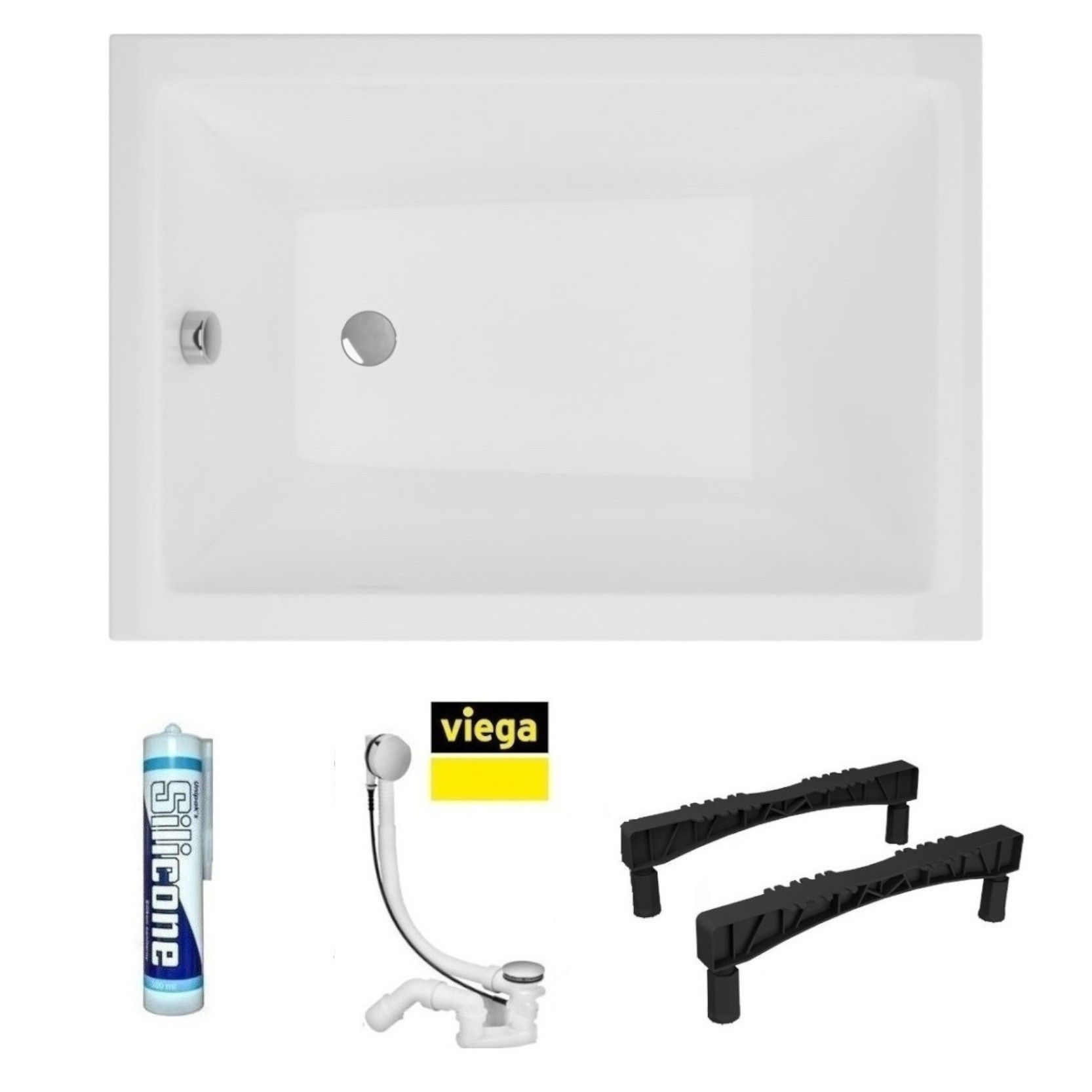 ECOLAM Badewanne 100x70 cm Marella kleine Acrylwanne Rechteck + Ablaufgarnitur VIEGA
