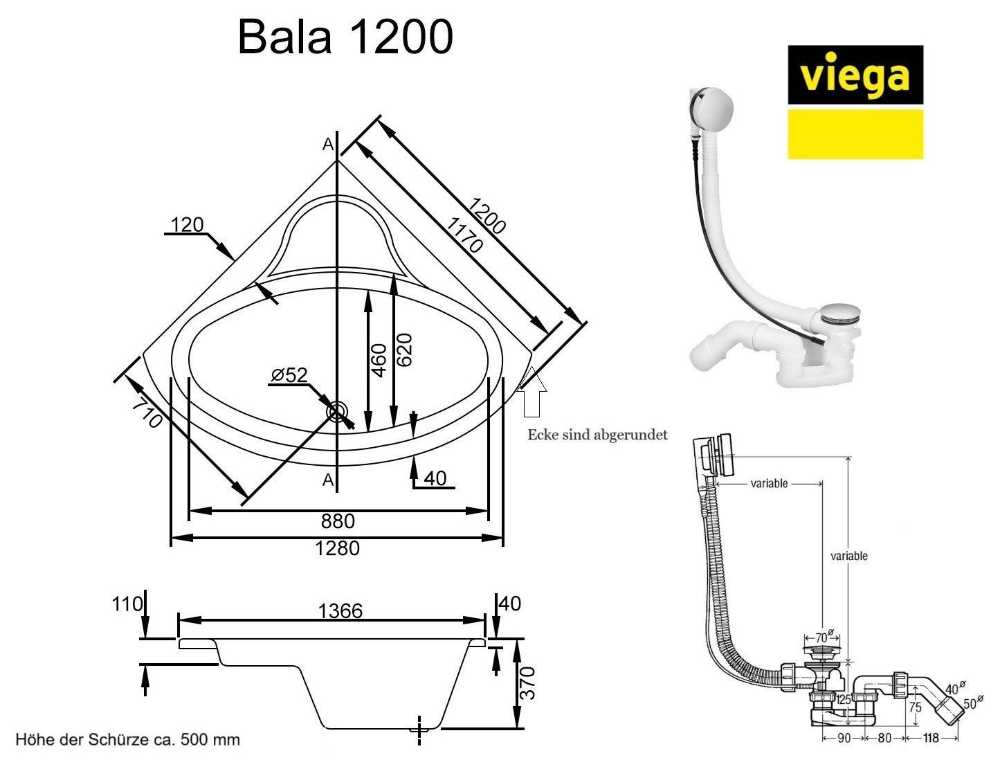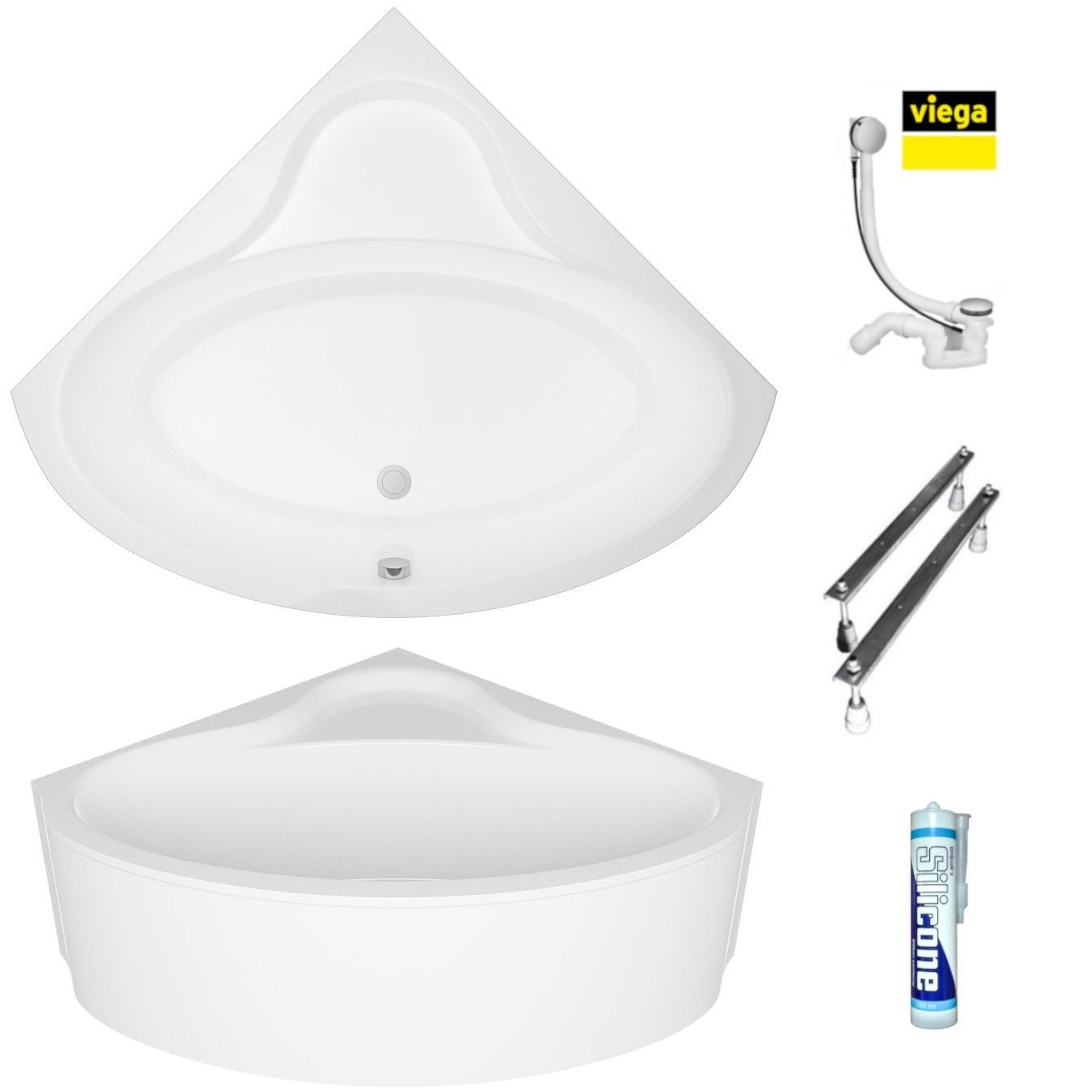 ECOLAM Badewanne 120x120 Bala Schürze Acrylwanne Eckwanne Wanne + Siphon Viega GRATIS
