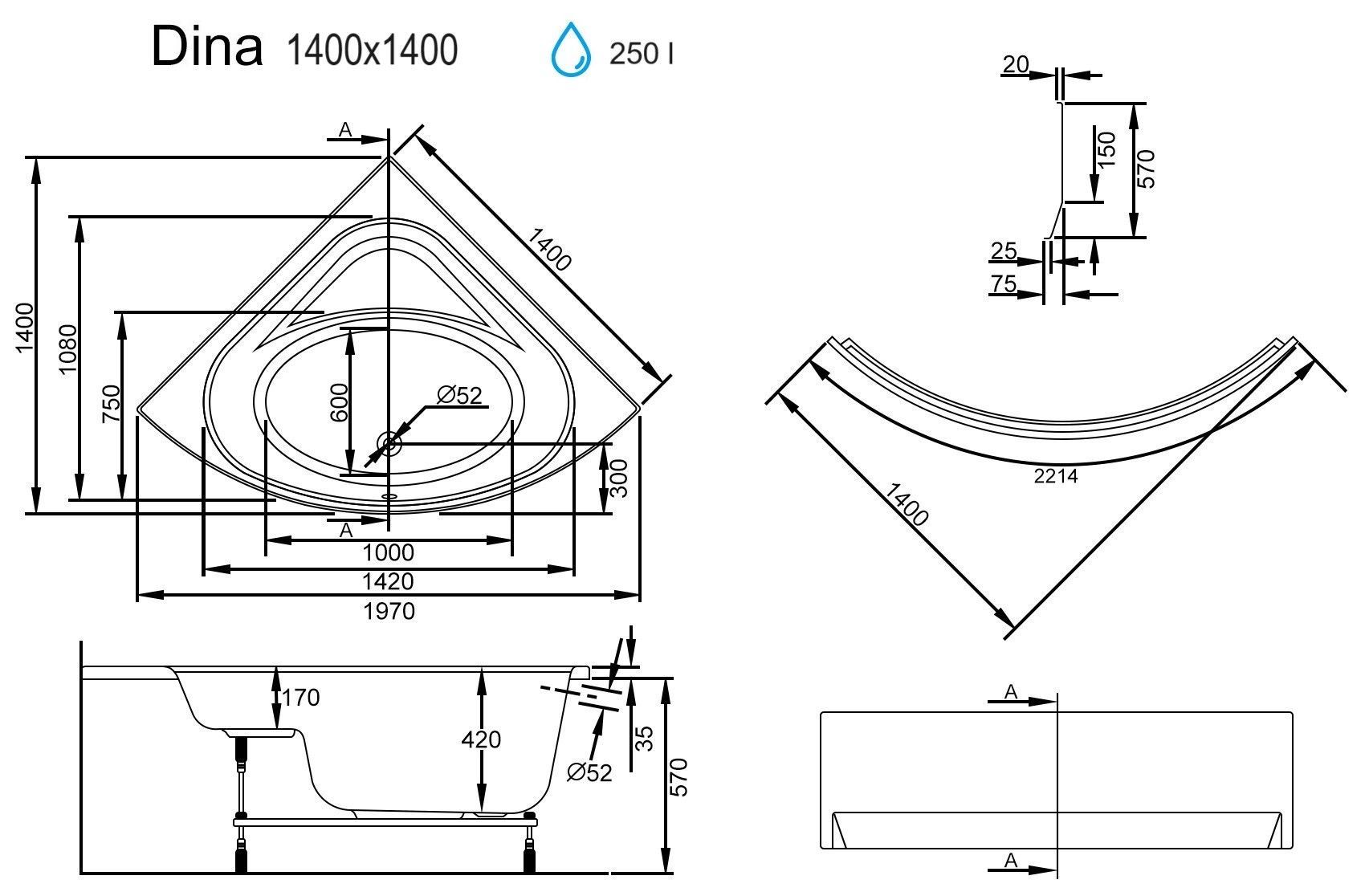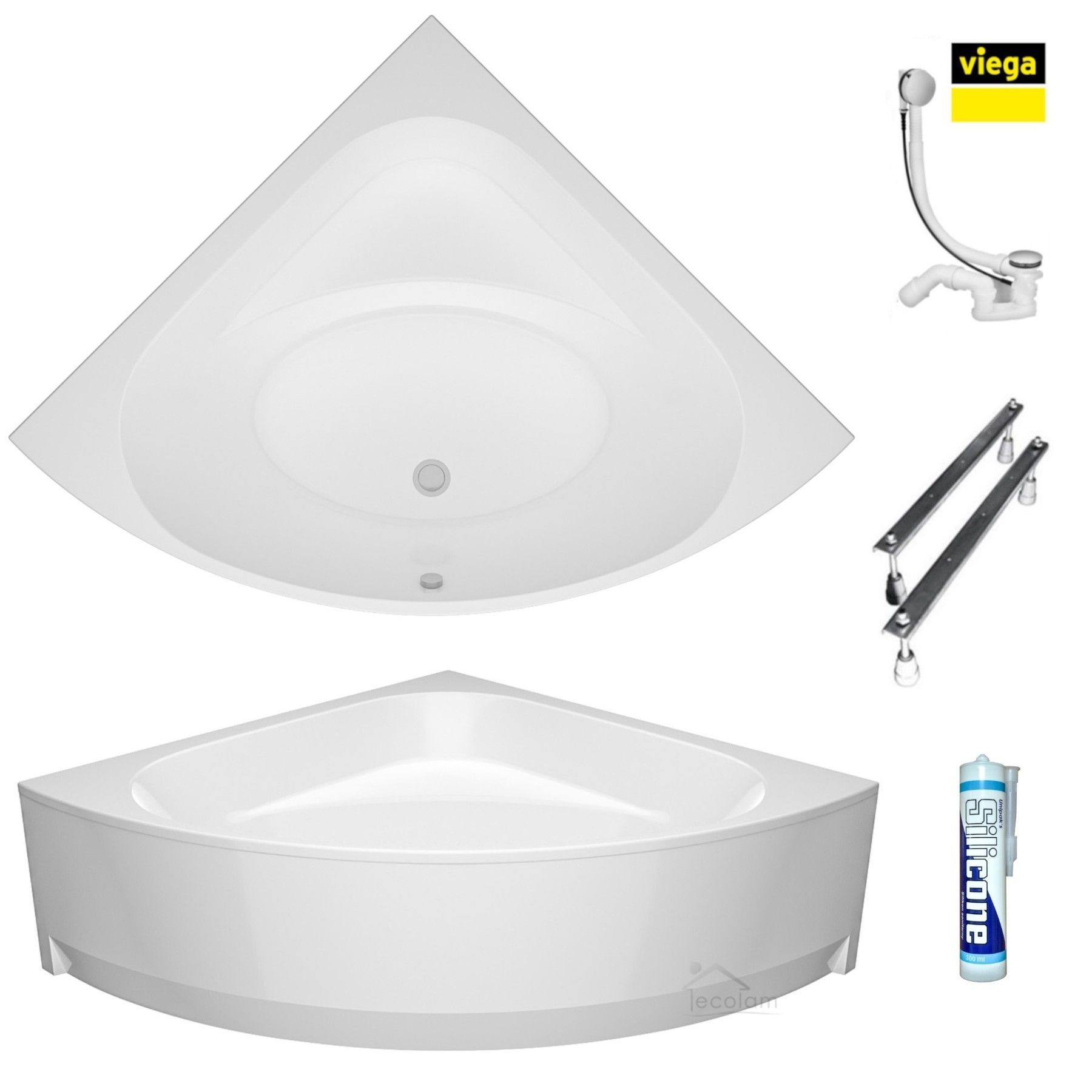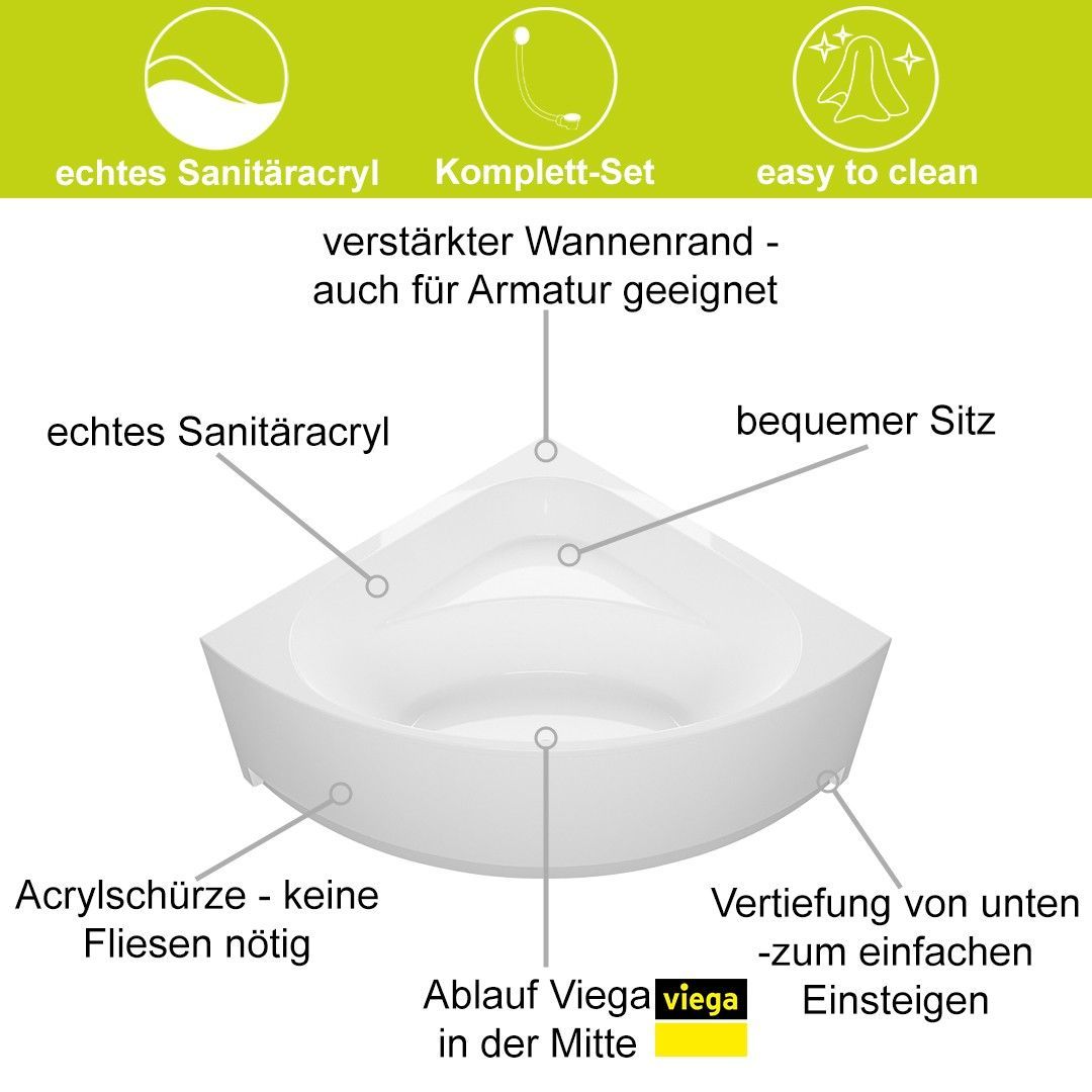 ECOLAM ECOLAM Badewanne 140x140 Dina Acrylwanne Eckwanne Wanne Schürze Siphon Viega GRATIS