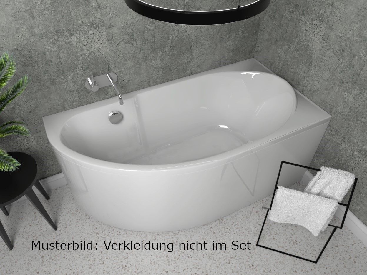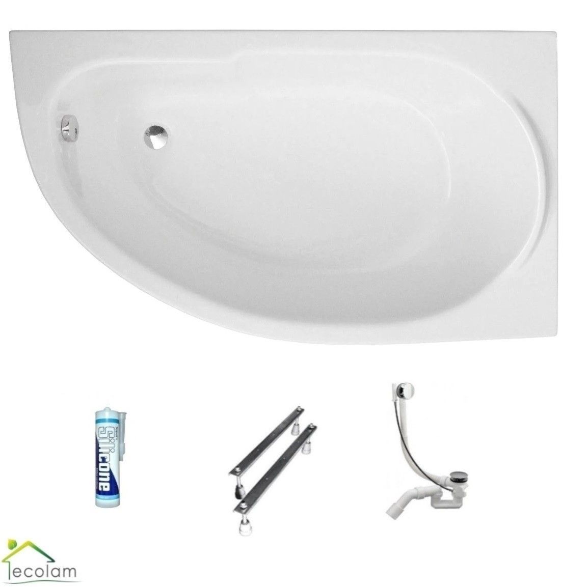 ECOLAM Badewanne 145x85 cm M-Polimat Eckbadewanne rechts Acrylwanne Siphon Silikon