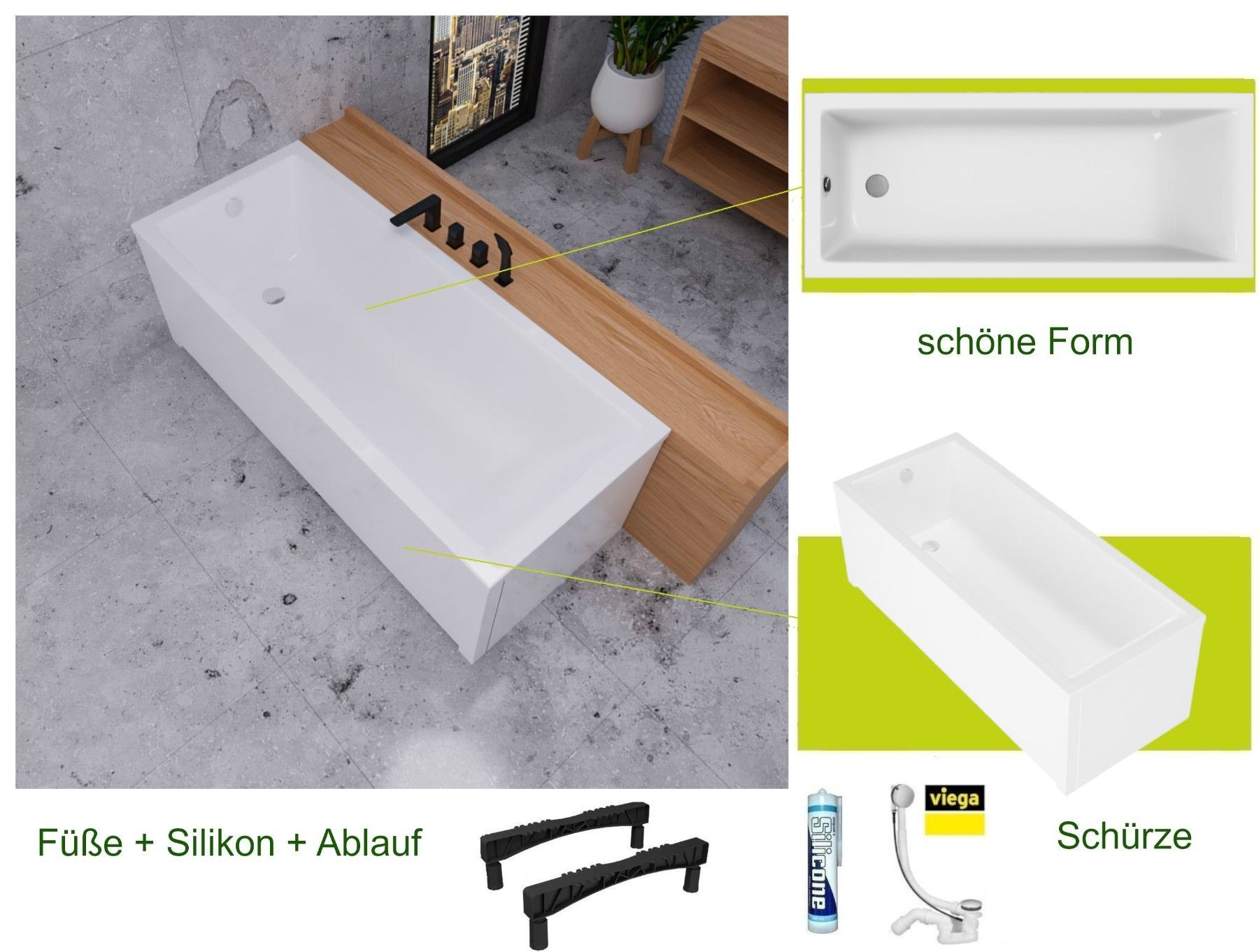 Rechteck Badewanne Marella 150x70 cm Im Set: Badewanne, Schürze, Füße, Montagematerial, Ablaufgarnitur VIEGA Hersteller Excellent, TOP Qualität, 100% echtes Sanitäracryl 20 Jahre Herstellergarantie auf Badewanne KOSTENLOSER VERSAND INNERHALB DEUTSCHLANDS!