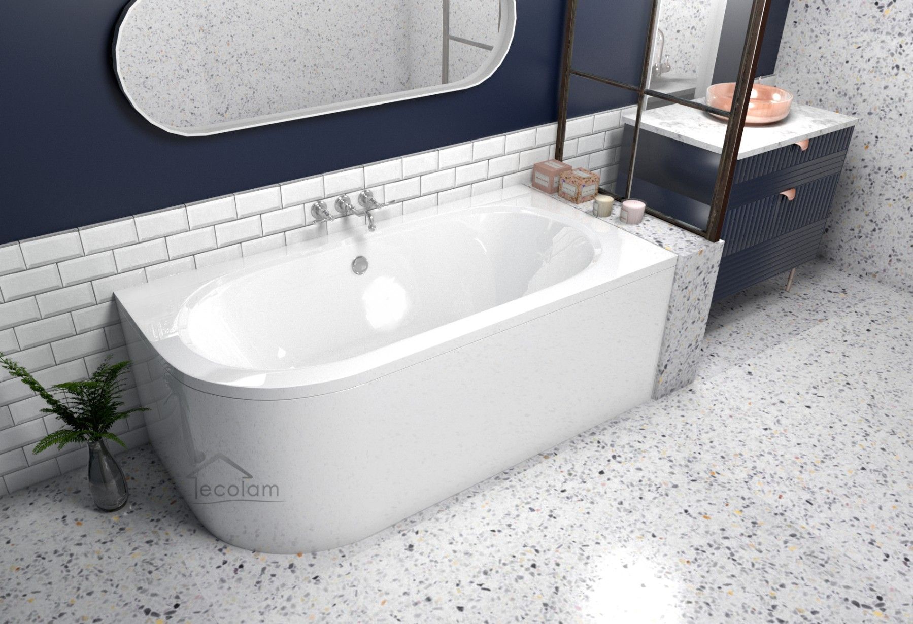 ECOLAM Badewanne 170x75 Avita Eckwanne rechts Acrylwanne für Zwei + Schürze Siphon