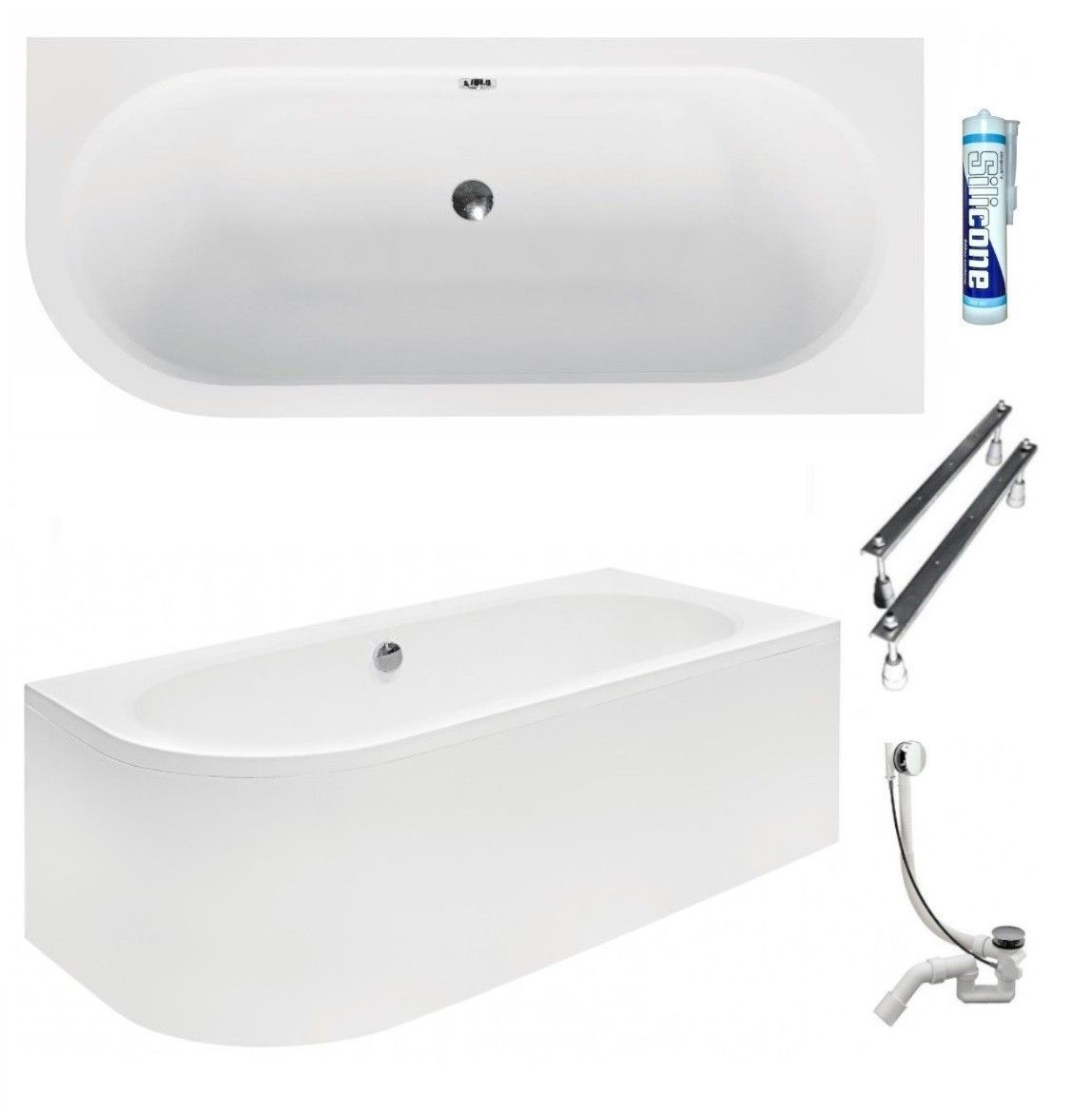 ECOLAM Badewanne 150x75 cm Avita Eckbadewanne links Acrylwanne Schürze Siphon Silikon
