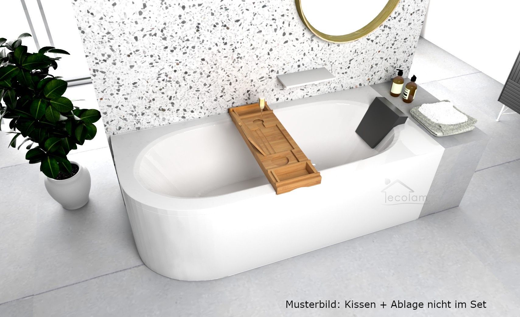 ECOLAM Badewanne 160x75 cm Avita Eckbadewanne links Acrylwanne Schürze Siphon Silikon