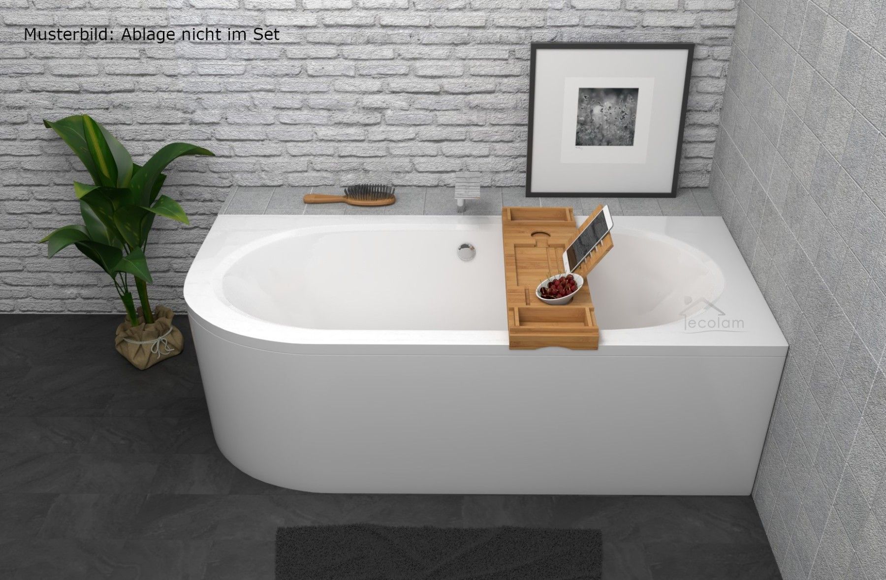 ECOLAM Badewanne 170x75 cm Avita Eckbadewanne links Acrylwanne Schürze Siphon Silikon