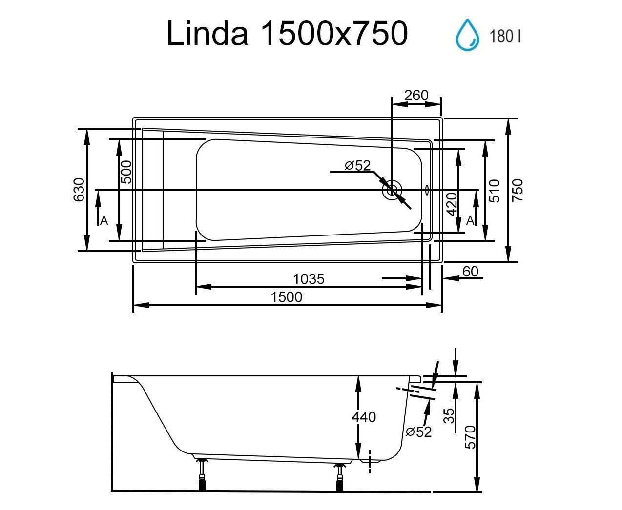 ECOLAM Badewanne 150x75 cm LINDA Acrylwanne Wanne Rechteck + Füße Siphon Viega GRATIS