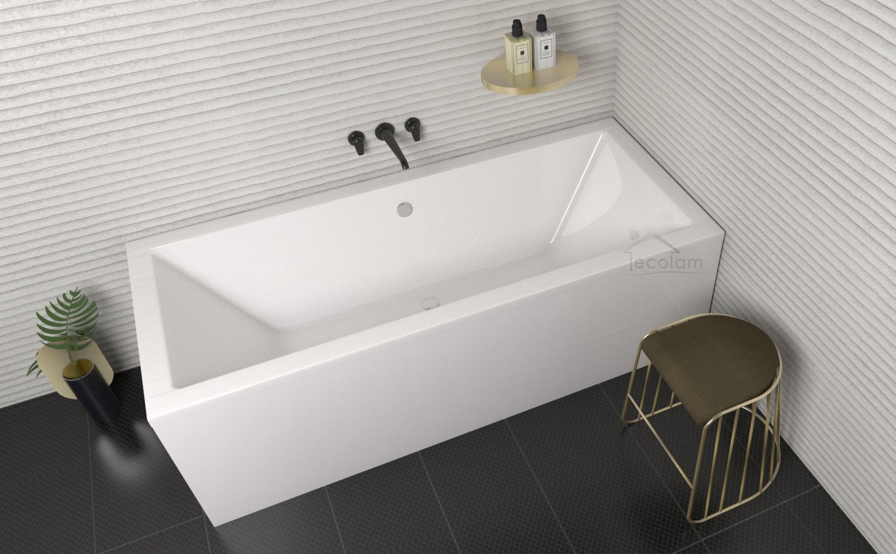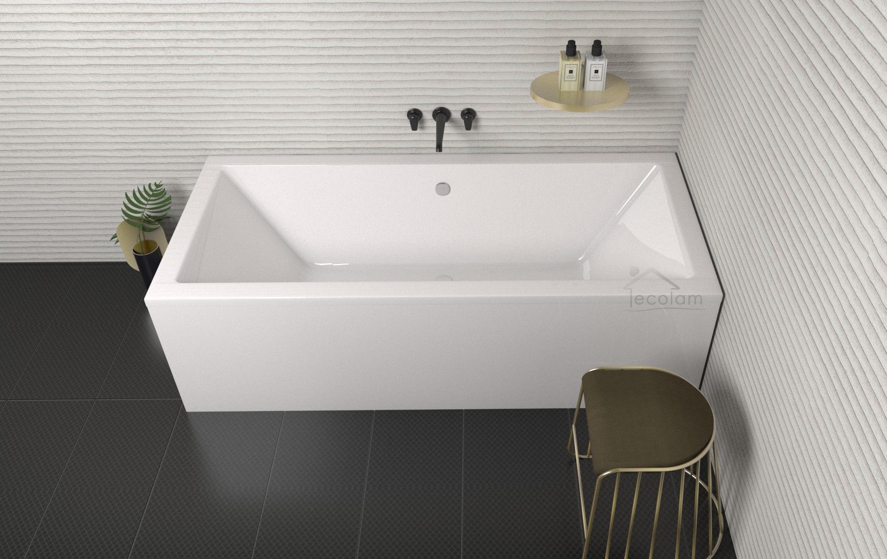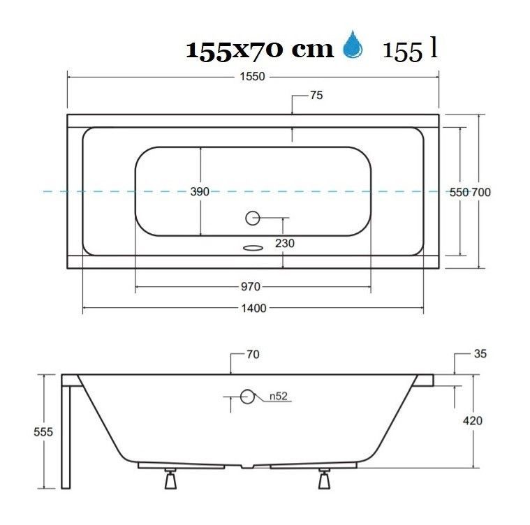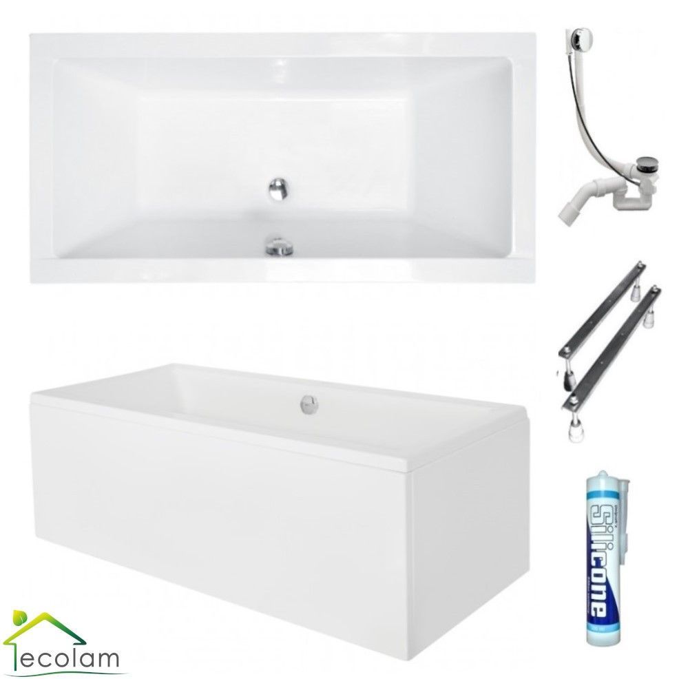 ECOLAM Badewanne 155x70 Quadro Rechteck Acrylwanne Schürze Ablaufgarnitur Silikon