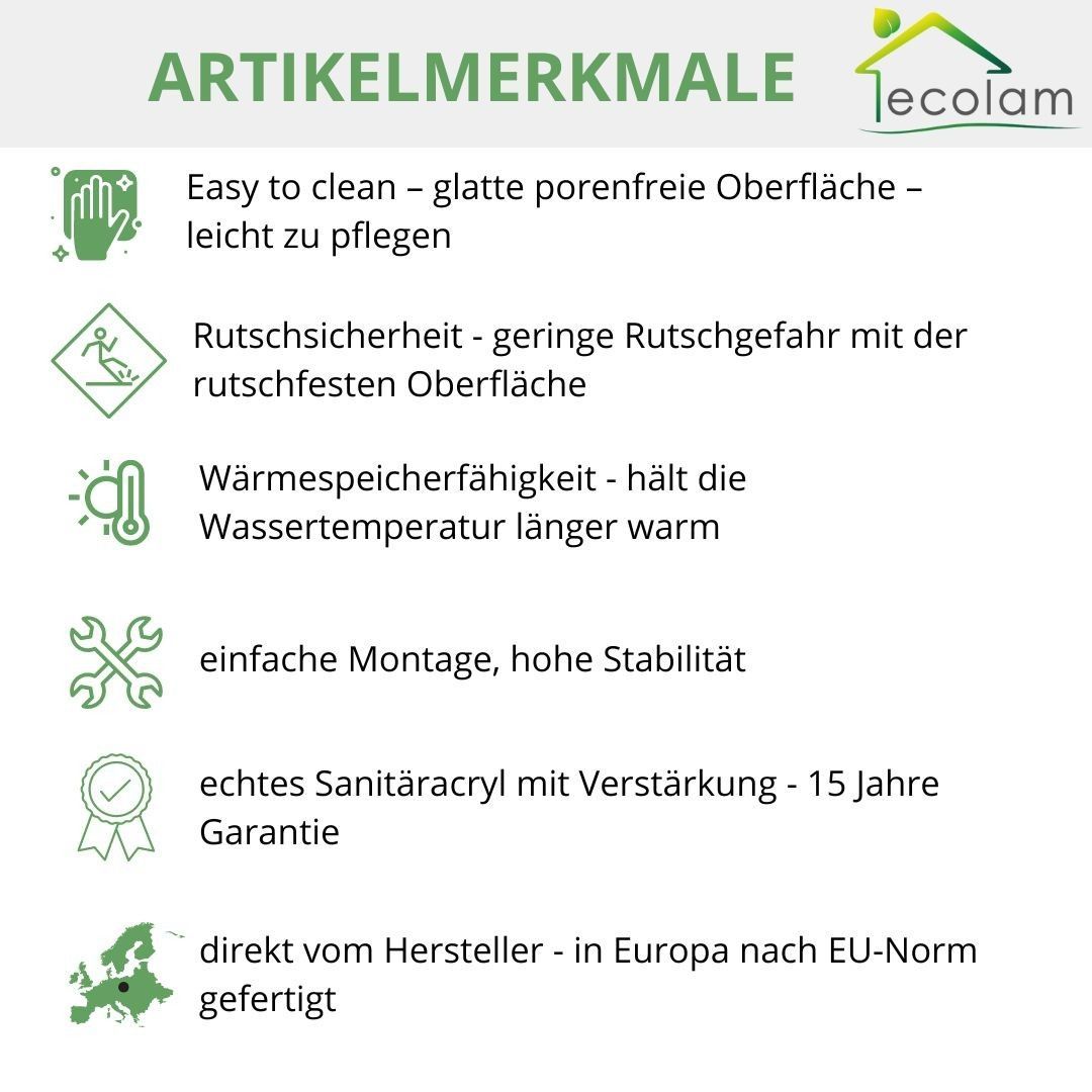 direkt vom Hersteller ECOLAM Thermobadewanne Tami 160x70 cm; echtes Sanitäracryl; Badewanne mit Isolierung, ecoThermoPro System, Wanne mit Thermoisolierung, beste Dämmung, Energieeinsparung IM SET: Rechteckbadewanne Tami 160x70 cm mit ecoThermoPro System, Ablaufgarnitur VIEGA, Silikon, Füße, Montagematerial; KOSTENLOSER VERSAND INNERHALB DEUTSCHLANDS; 15 Jahre Herstellergarantie auf Badewanne