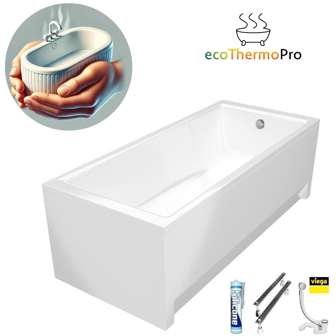 ECOLAM Badewanne 160x70 cm Thermobadewanne TAMI Acrylwanne + Isolierung Schürze Viega