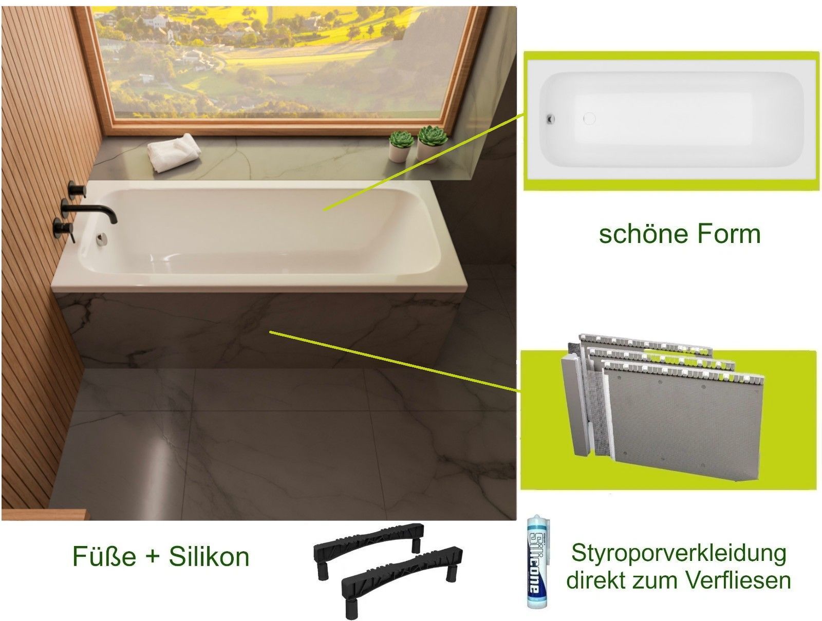 Rechteck Badewanne Pola 160x70 cm Im Set: Badewanne, Styroporverkleidung direkt zum Verfliesen, Füße, Montagematerial, Ablaufgarnitur VIEGA Hersteller Excellent, TOP Qualität, 100% echtes Sanitäracryl 20 Jahre Herstellergarantie auf Badewanne KOSTENLOSER VERSAND INNERHALB DEUTSCHLANDS!
