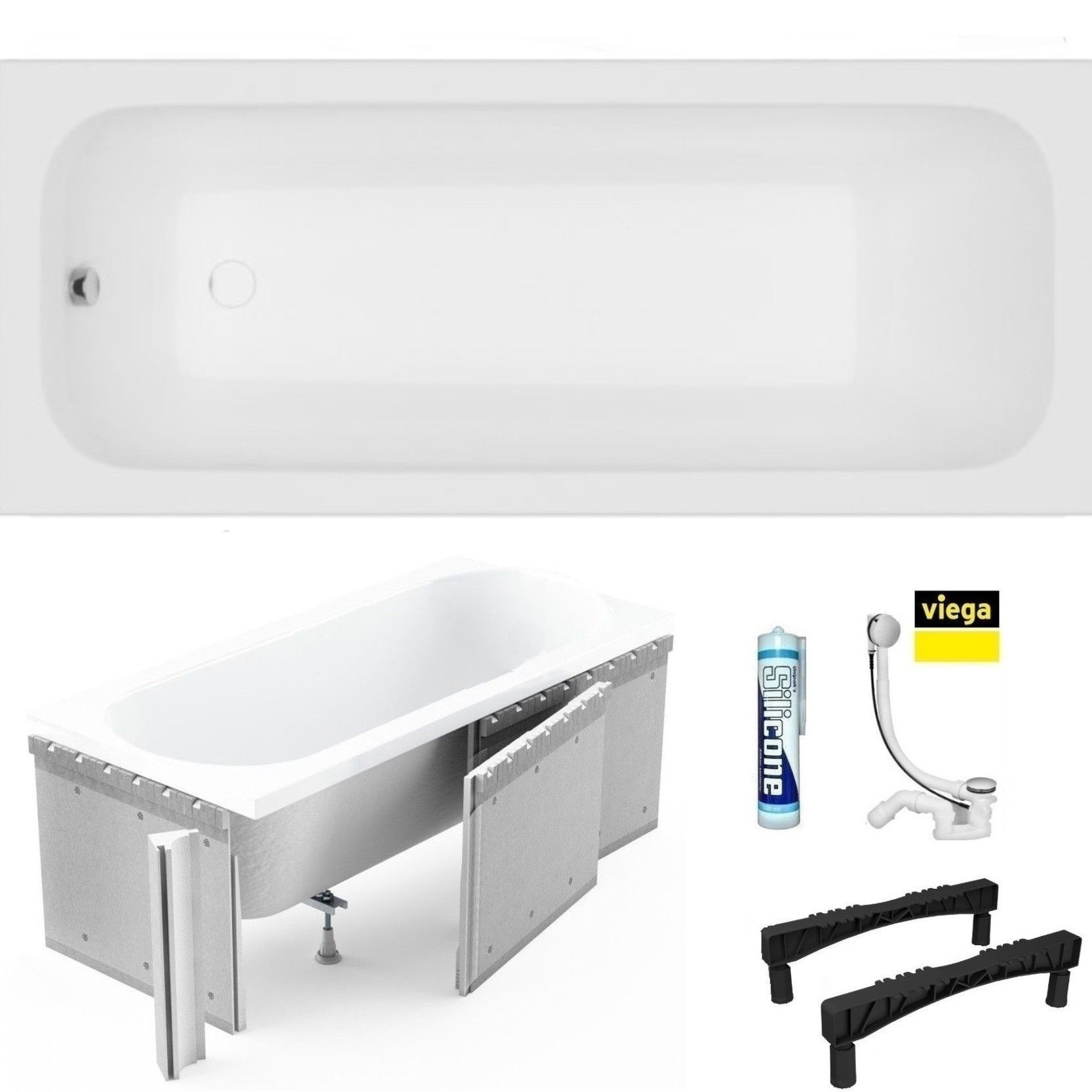 ECOLAM Badewanne 160x70 cm Wanne Pola Rechteck Styropor zum Verfliesen + VIEGA