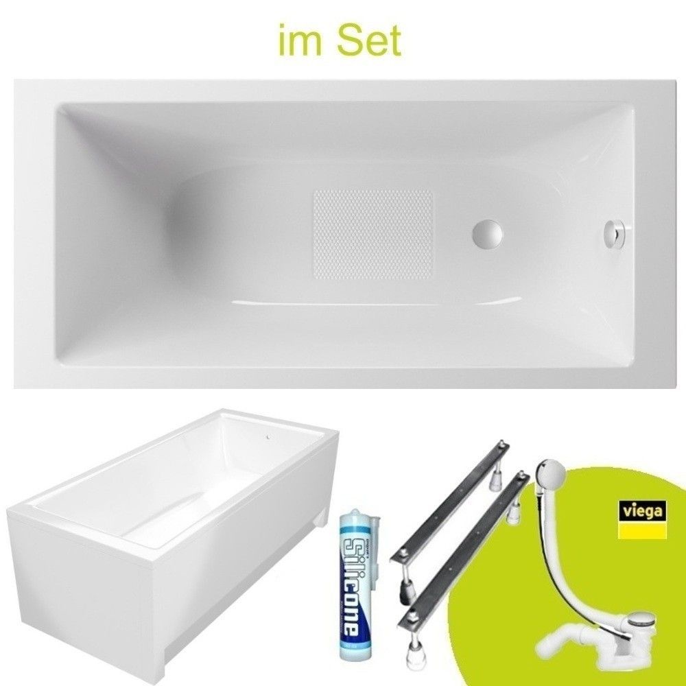 ECOLAM Badewanne 160x70 TAMI Antirutsch Acrylwanne Wanne Rechteck Schürze Füße Siphon