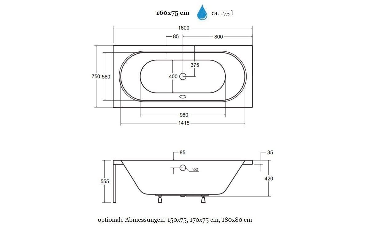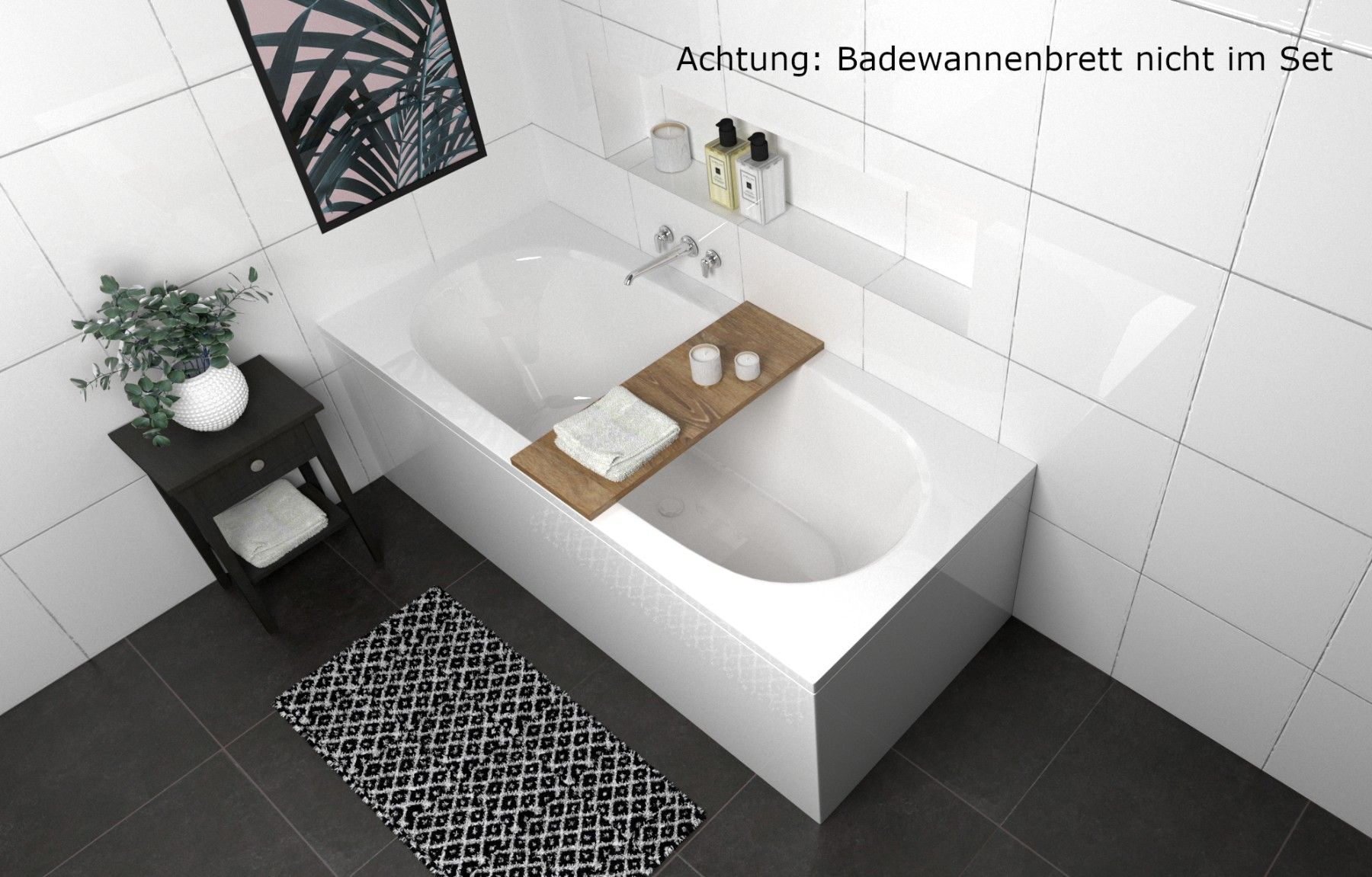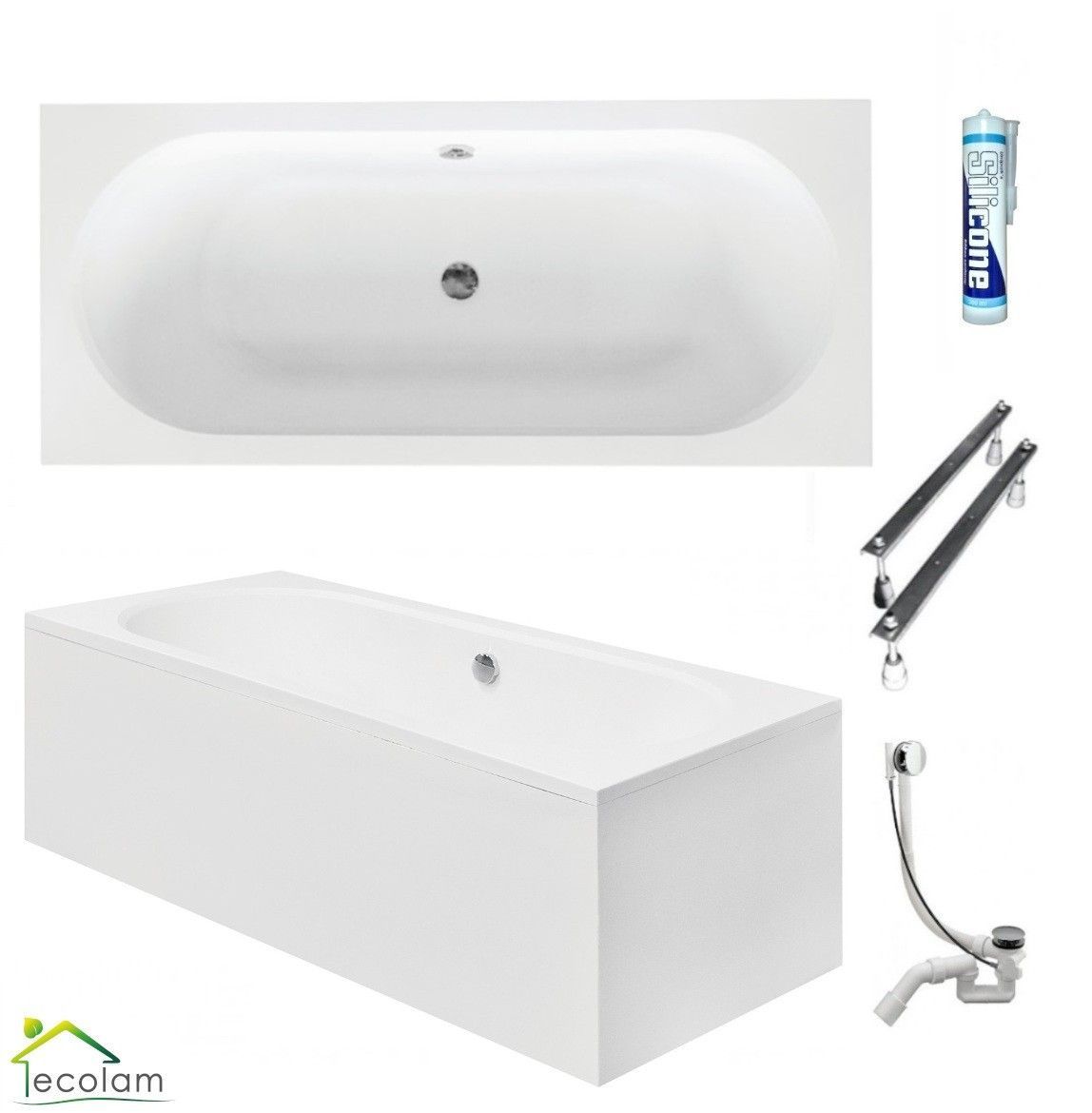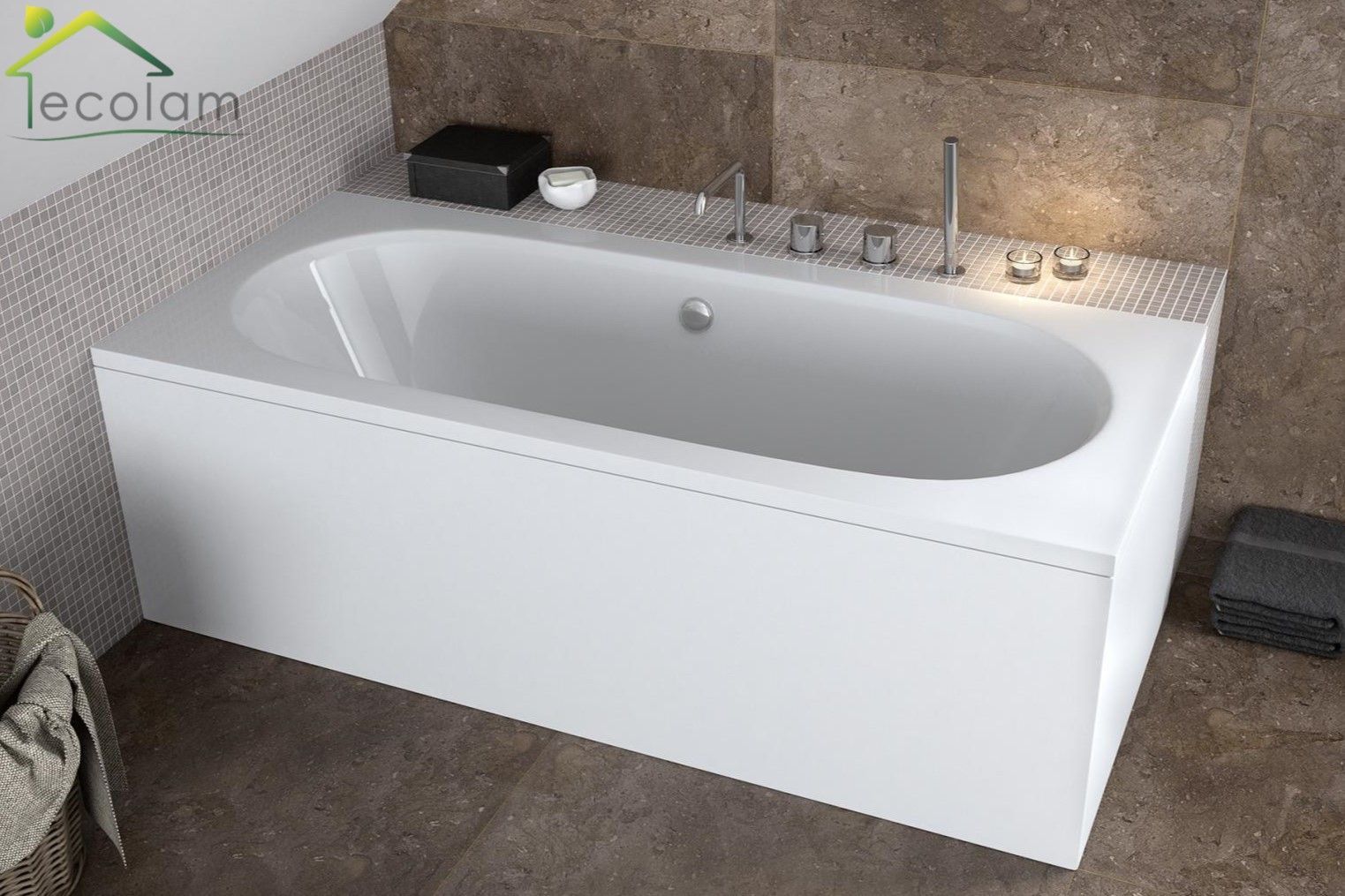 ECOLAM Badewanne 160x75 cm V-Besco Rechteck Acrylwanne Schürze Siphon Silikon GRATIS