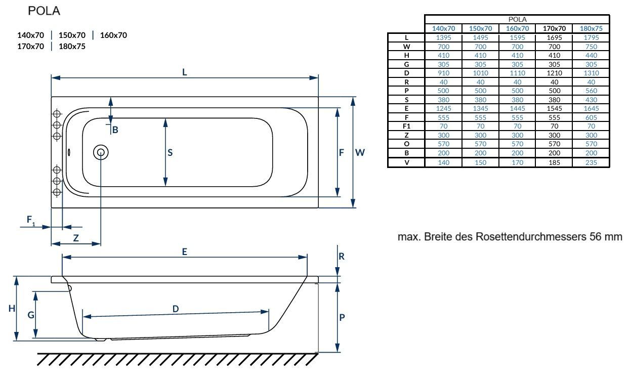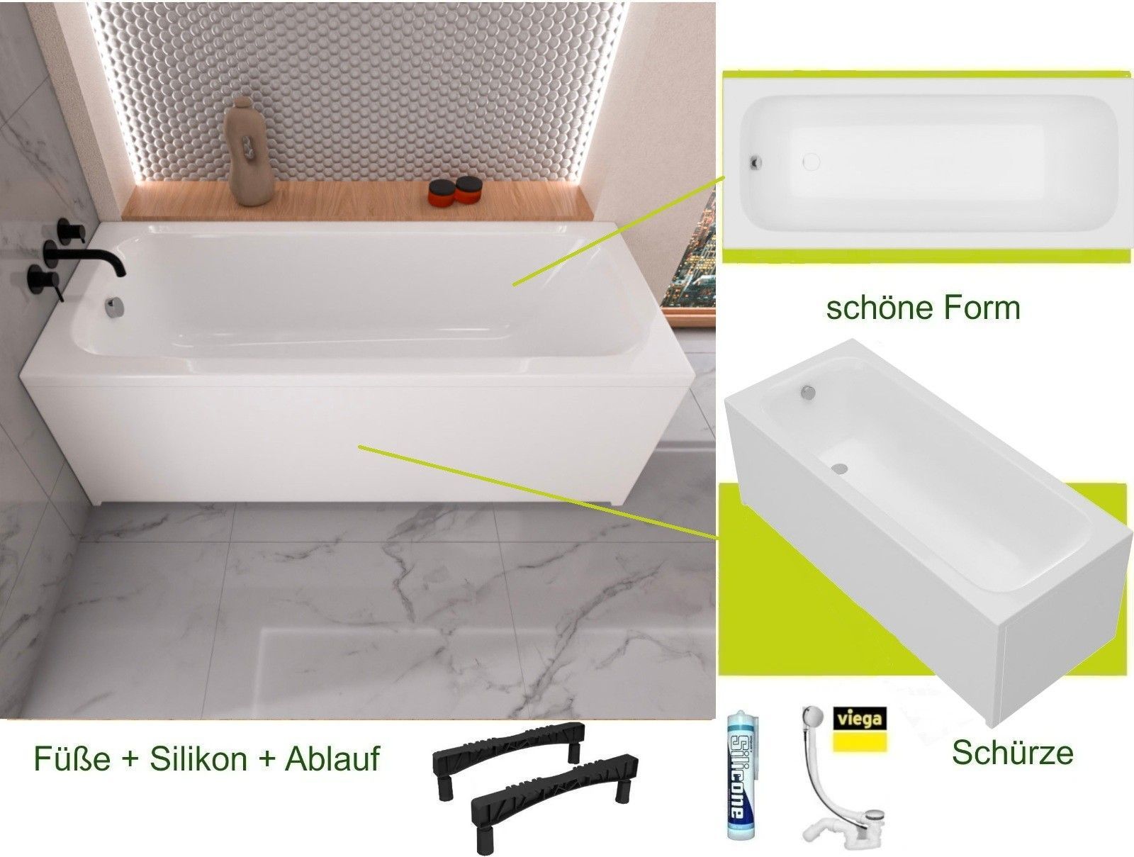 Rechteck Badewanne Pola 170x70 cm Im Set: Badewanne, Schürze, Füße, Montagematerial, Ablaufgarnitur VIEGA Hersteller Excellent, TOP Qualität, 100% echtes Sanitäracryl 20 Jahre Herstellergarantie auf Badewanne KOSTENLOSER VERSAND INNERHALB DEUTSCHLANDS!