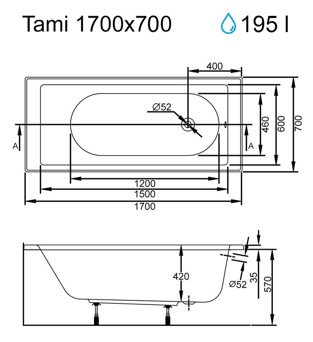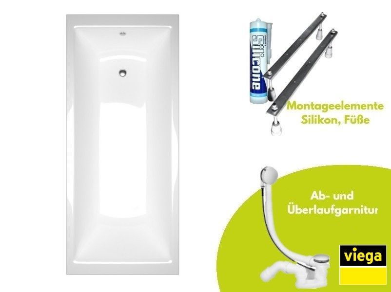 ECOLAM Badewanne 170x70 cm TAMI Acrylwanne Wanne Rechteck Füße + Siphon Viega GRATIS