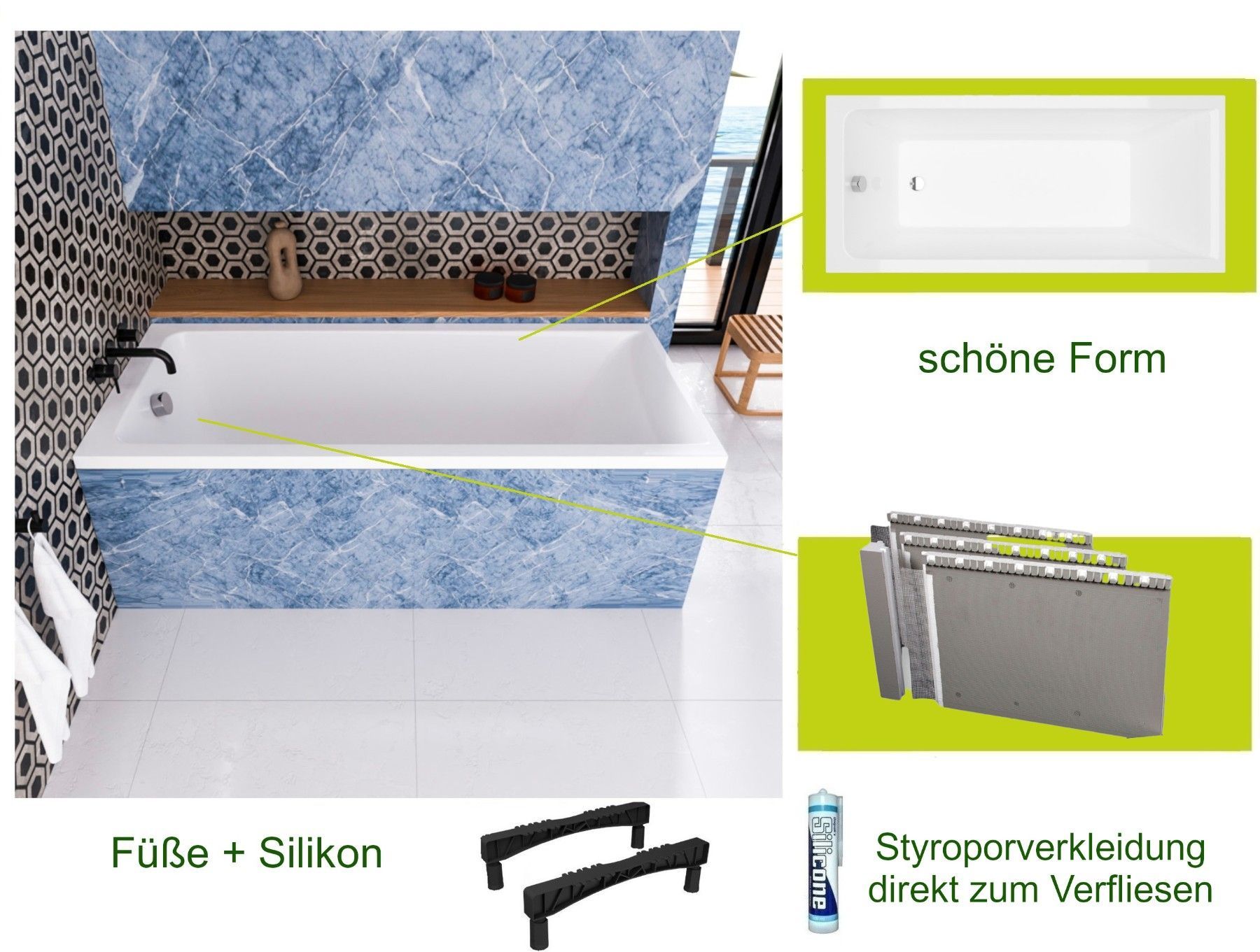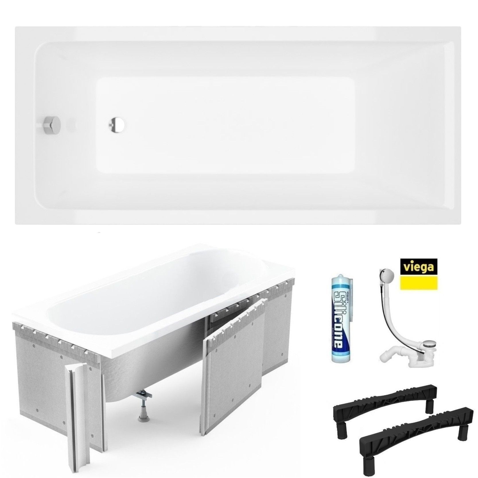 Rechteck Badewanne Savia 170x70 cm Im Set: Badewanne, Styroporverkleidung direkt zum Verfliesen, Füße, Montagematerial, Ablaufgarnitur VIEGA Hersteller Excellent, TOP Qualität, 100% echtes Sanitäracryl 20 Jahre Herstellergarantie auf Badewanne KOSTENLOSER VERSAND INNERHALB DEUTSCHLANDS!