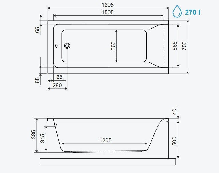 ECOLAM Badewanne 170x70 cm Wanne Savia Rechteck Styropor zum Verfliesen + VIEGA
