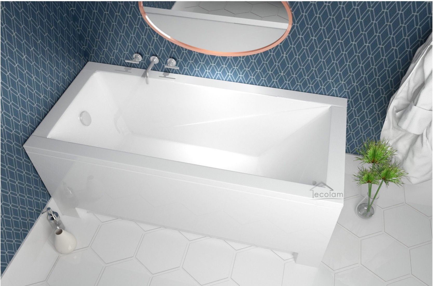 ECOLAM Badewanne 130x70 Modern Acrylwanne Rechteck Füße Ablaufgarnitur Silikon GRATIS