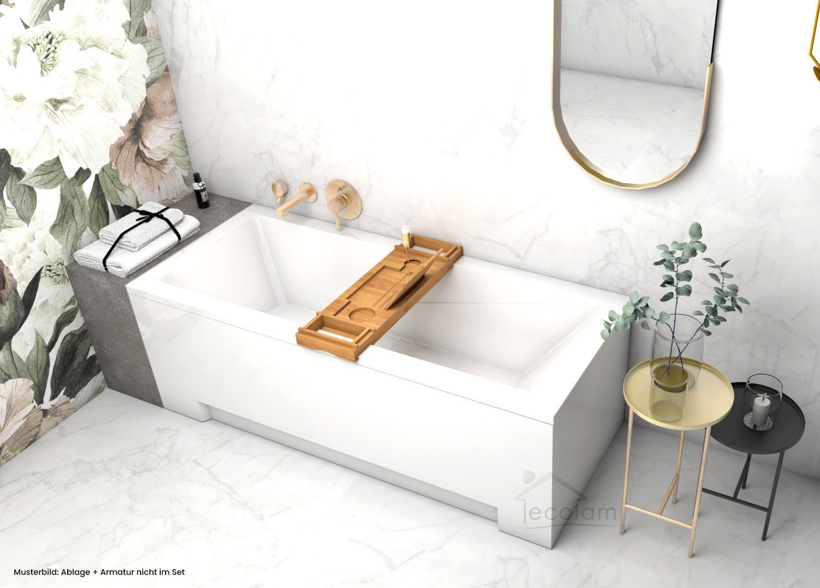 ECOLAM Badewanne 180x80 Modern Acrylwanne Rechteck Füße Ablaufgarnitur Silikon GRATIS