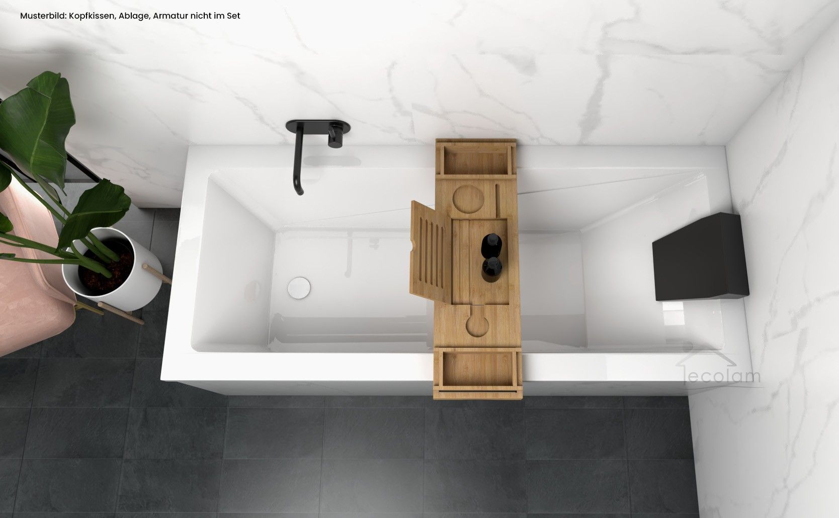 ECOLAM Badewanne 170x70 Modern Acrylwanne Rechteck Füße Ablaufgarnitur Silikon GRATIS