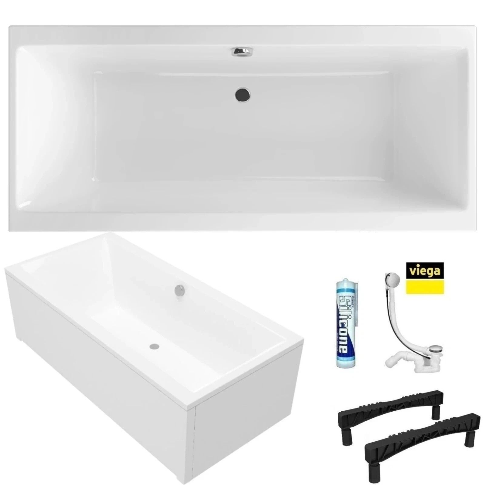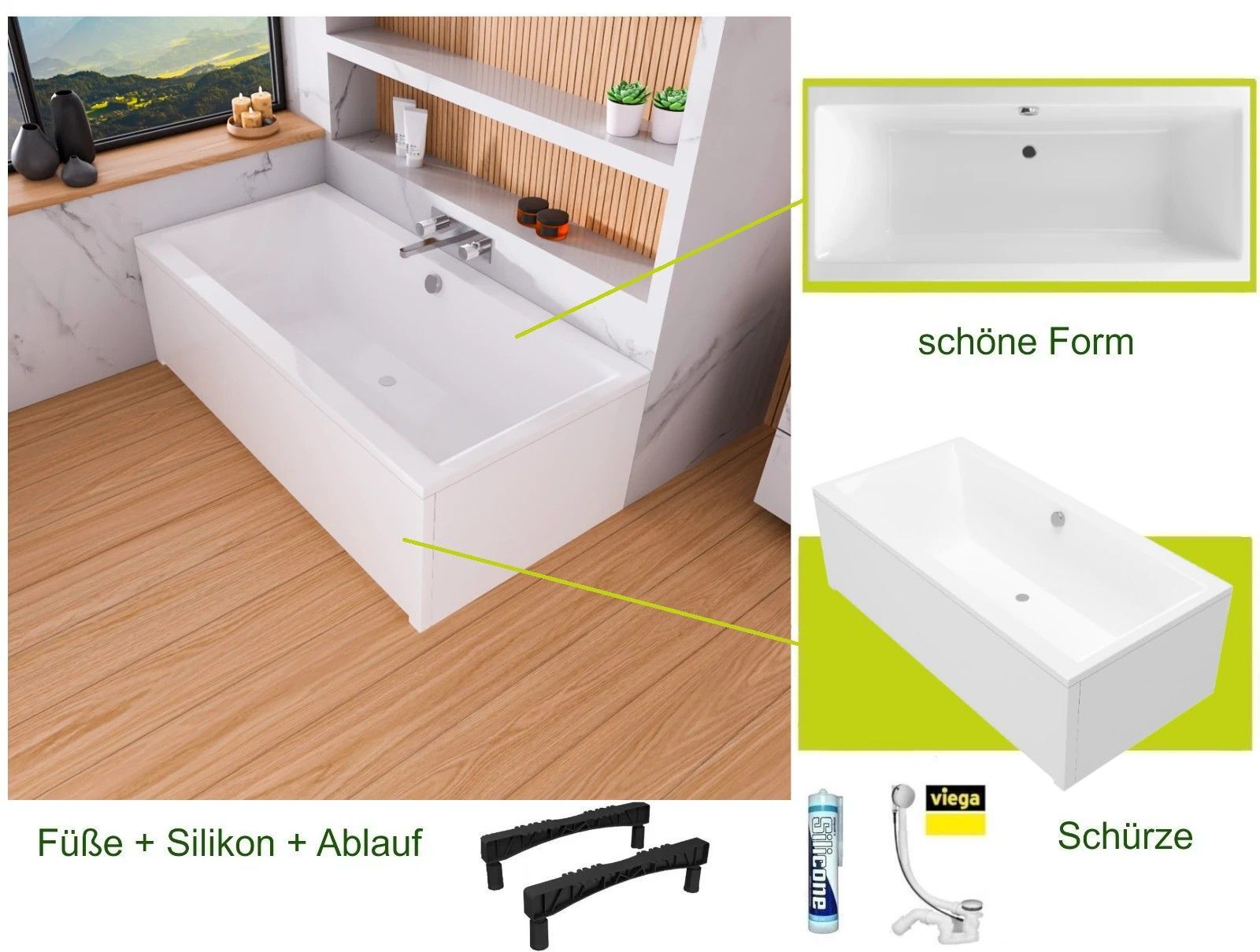 ECOLAM Badewanne 170x75 cm Pryzmat Wanne Rechteck Schürze Ablaufgarnitur VIEGA