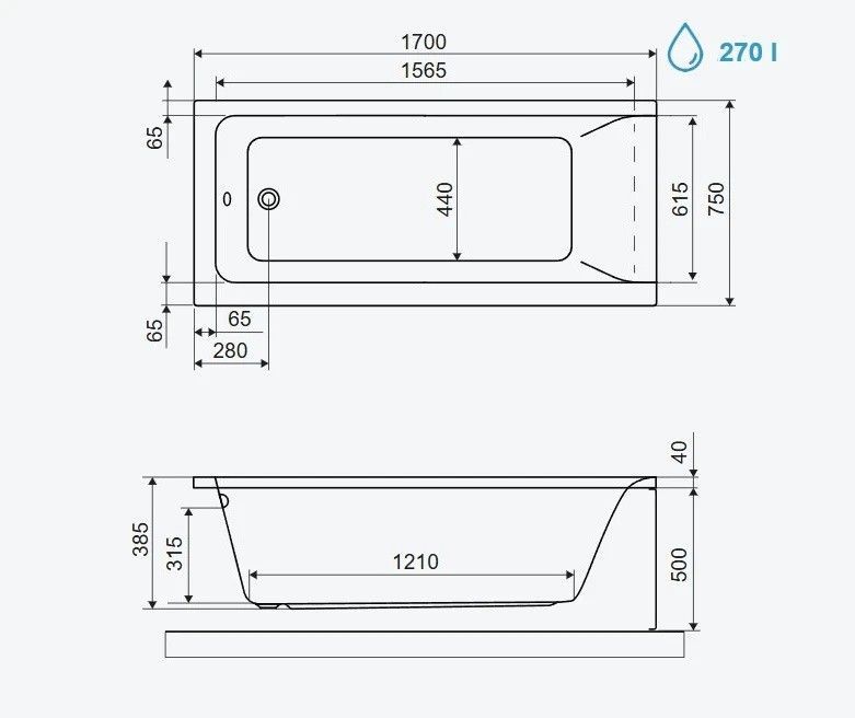 ECOLAM Badewanne 170x75 cm Savia Wanne Rechteck Schürze Ablaufgarnitur VIEGA