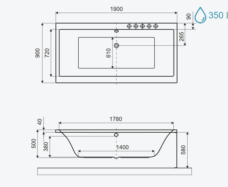 ECOLAM Badewanne 190x90 cm Wanne Pryzmat Rechteck Styropor zum Verfliesen + VIEGA