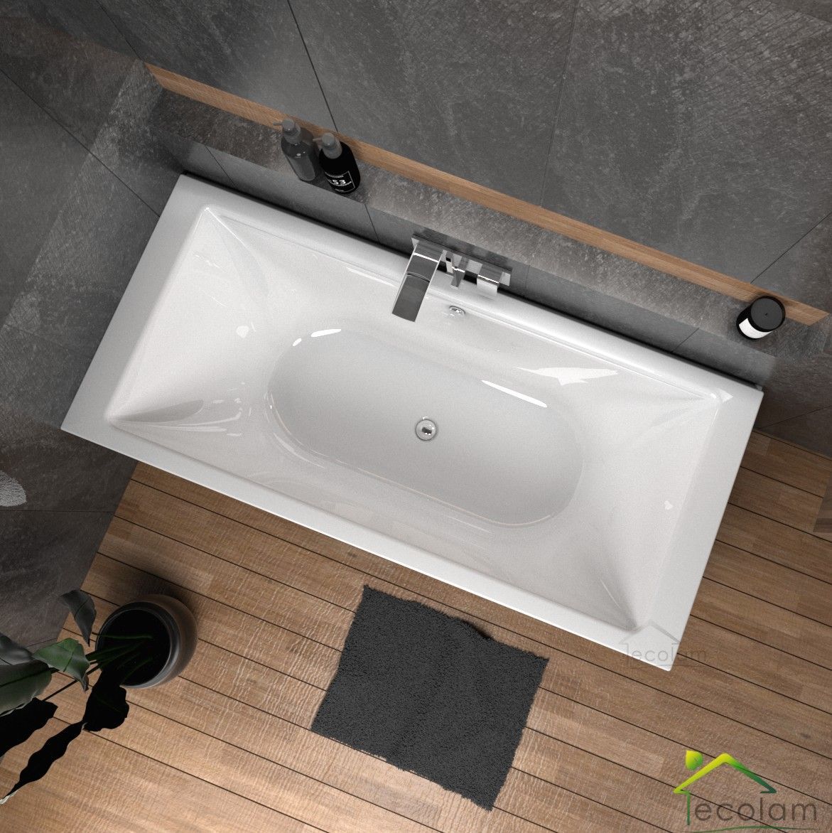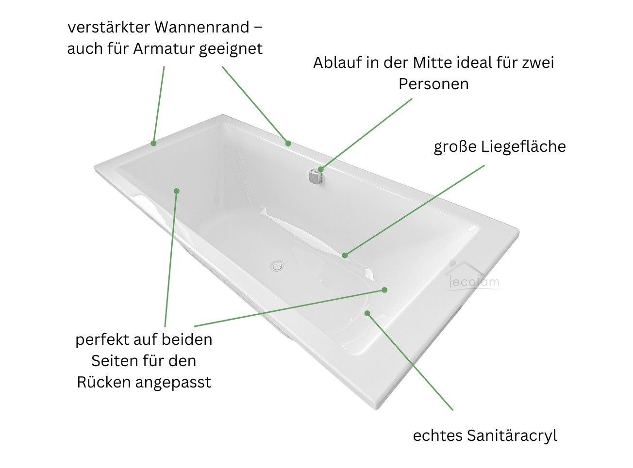 ECOLAM Badewanne 200x90 cm TAMI Acrylwanne für Zwei Wanne Rechteck Füße Siphon GRATIS