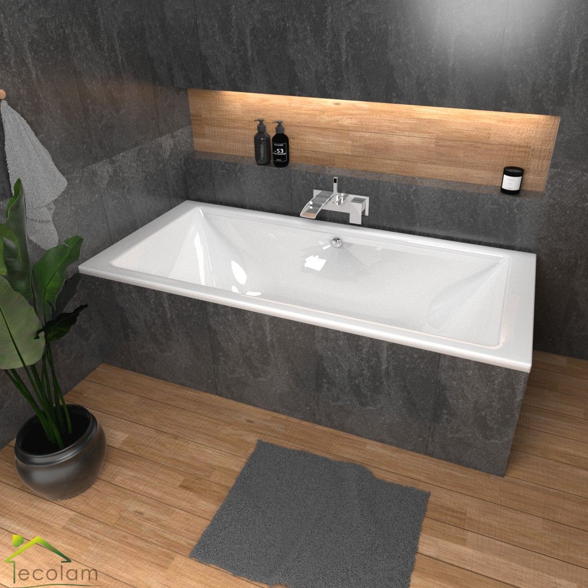 direkt vom Hersteller ECOLAM Badewanne Tami 200x90 cm; echtes Sanitäracryl; IM SET: Eckbadewanne Tami 200x90 cm, Styroporverkleidung zum Befliesen, Siphon, Silikon, Füße, Montagematerial; KOSTENLOSER VERSAND INNERHALB DEUTSCHLANDS; 15 Jahre Herstellergarantie auf Badewanne; IDEAL FÜR ZWEI PERSONEN