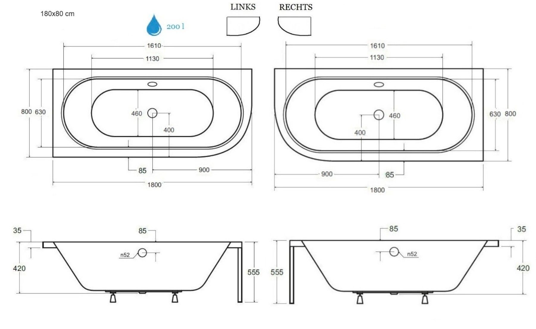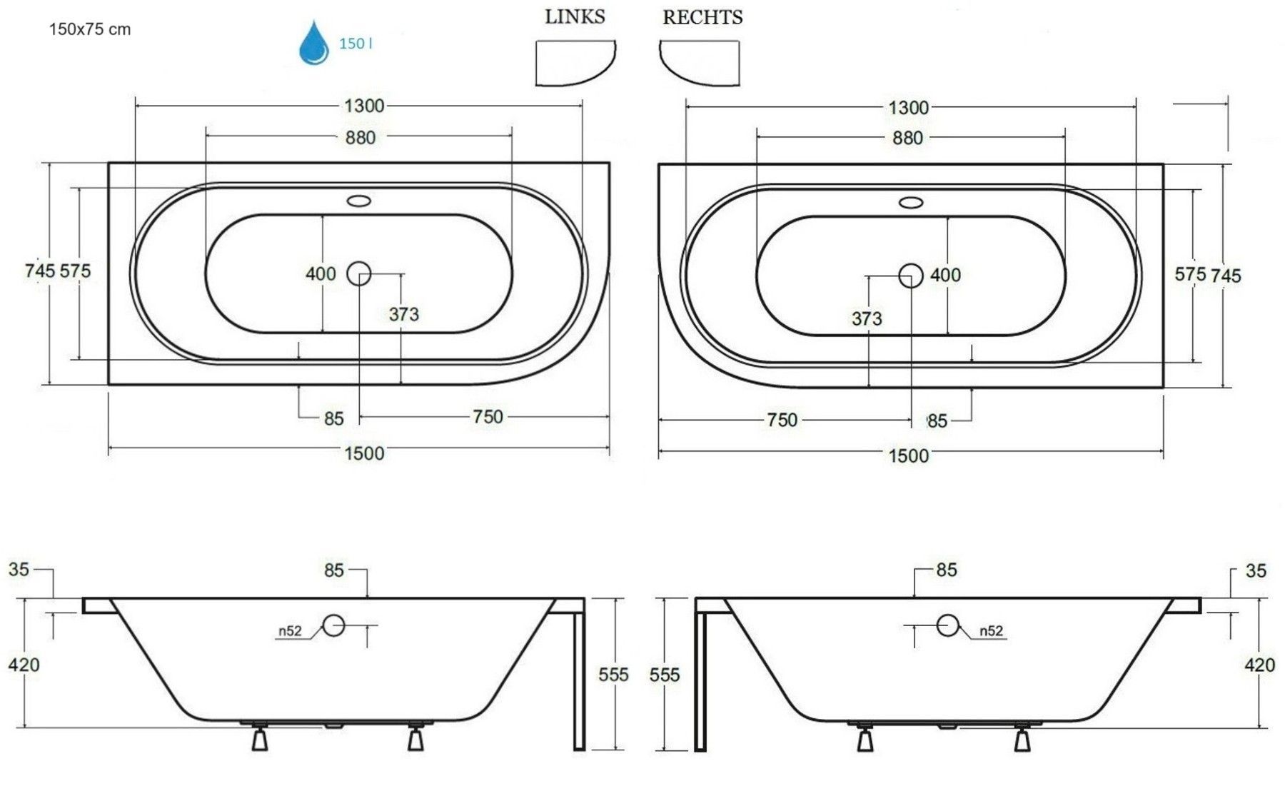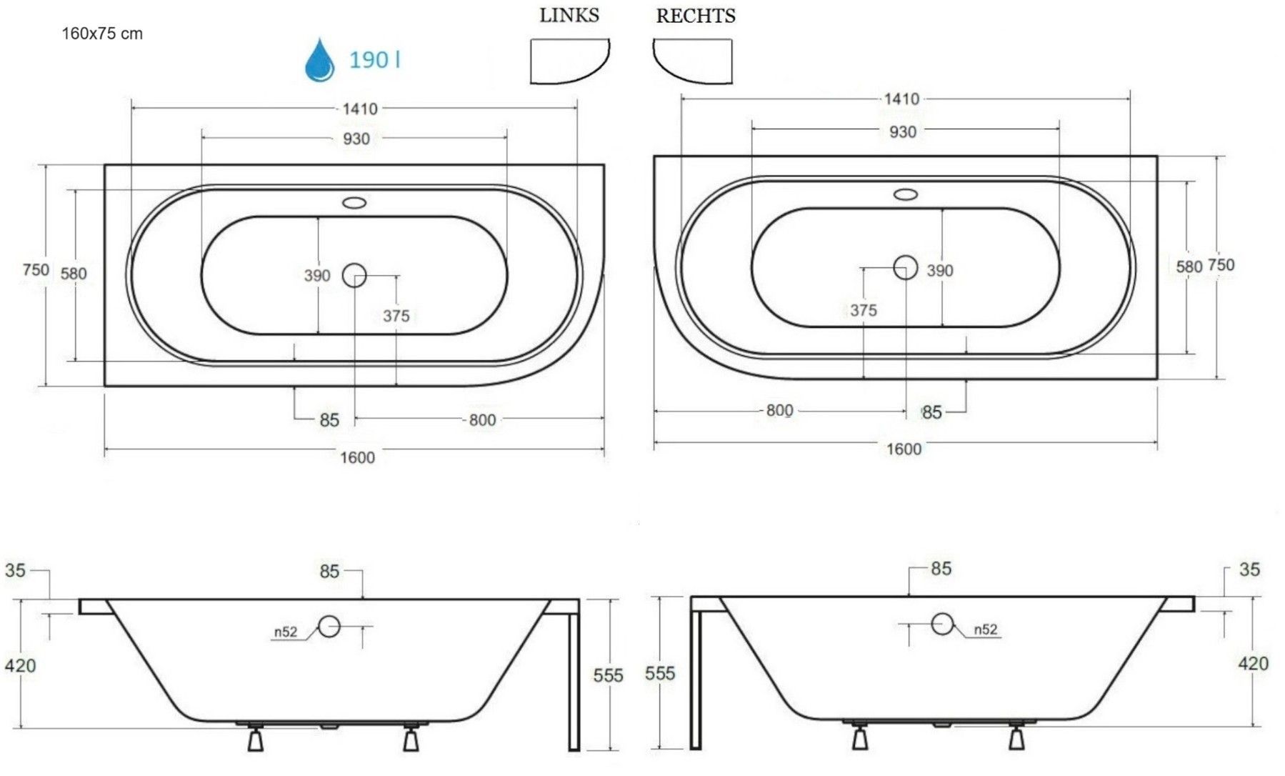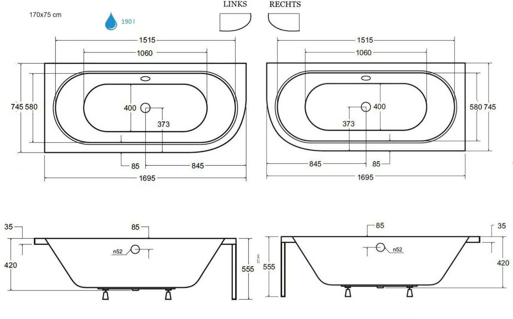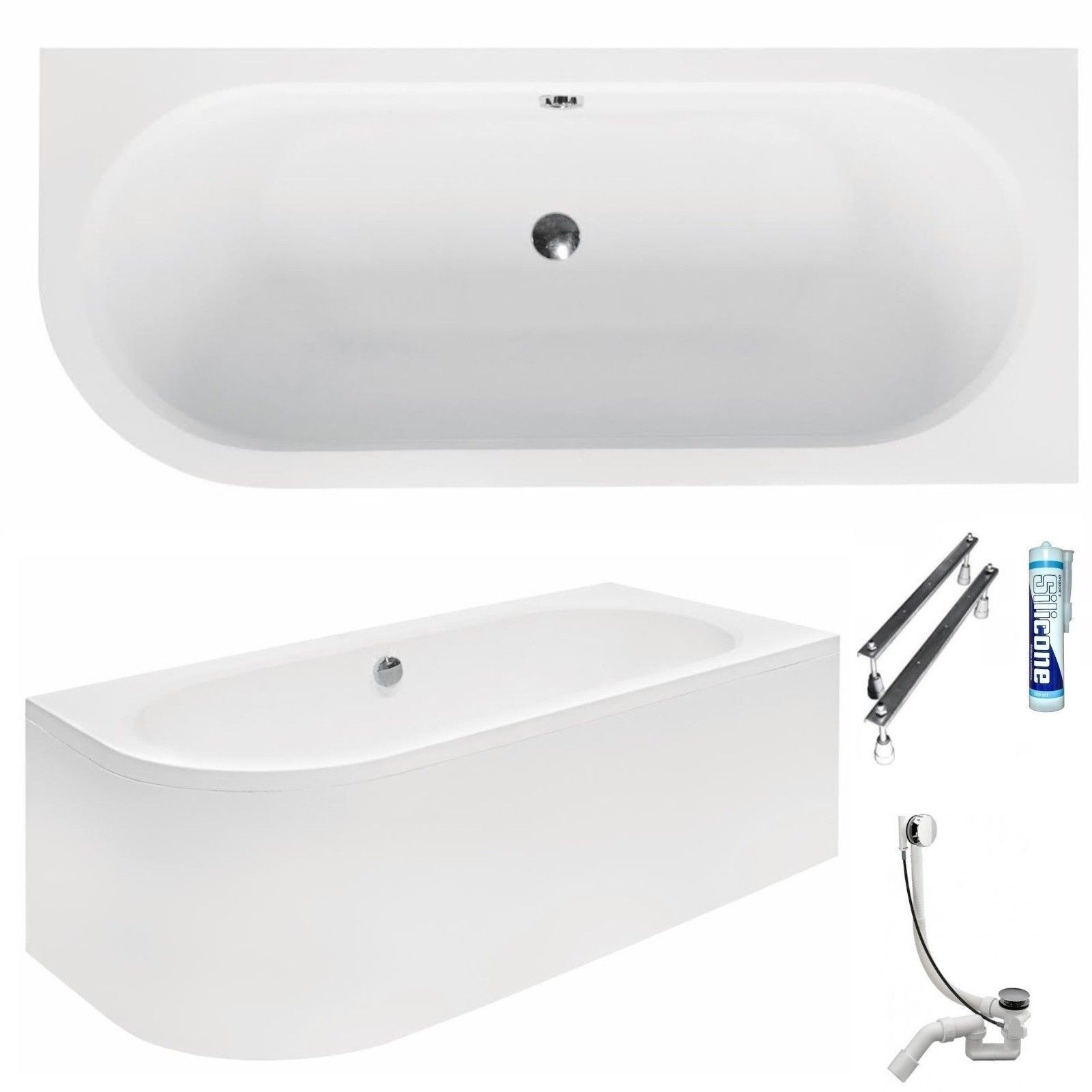 ECOLAM Badewanne Avita 150 160 170 180 Eckwanne Acrylwanne für Zwei + Schürze Siphon