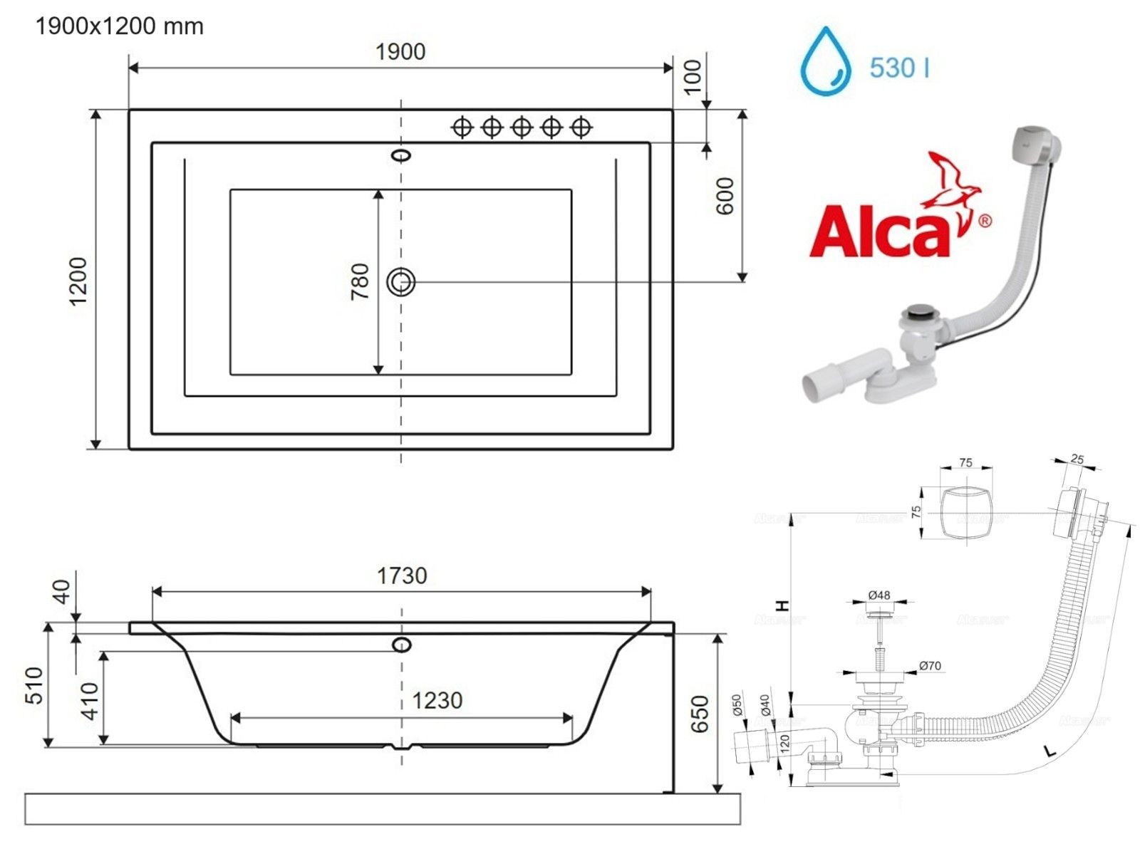 DE kostenloser Versand 30 Tage Austausch Rückgabe *neue Ware Herstellergarantie Kundenbetreuung Mo-Fr 8.00-16.00 SEHR GUTE QUALITÄT - 100 % ECHTES SANITÄRACRYL große Badewanne 190x120 cm große Liegefläche - ideal für zwei Personen Schürze aus Acryl Ablauf Alcaplast + Silikon + Füße GRATIS 20 Jahre H