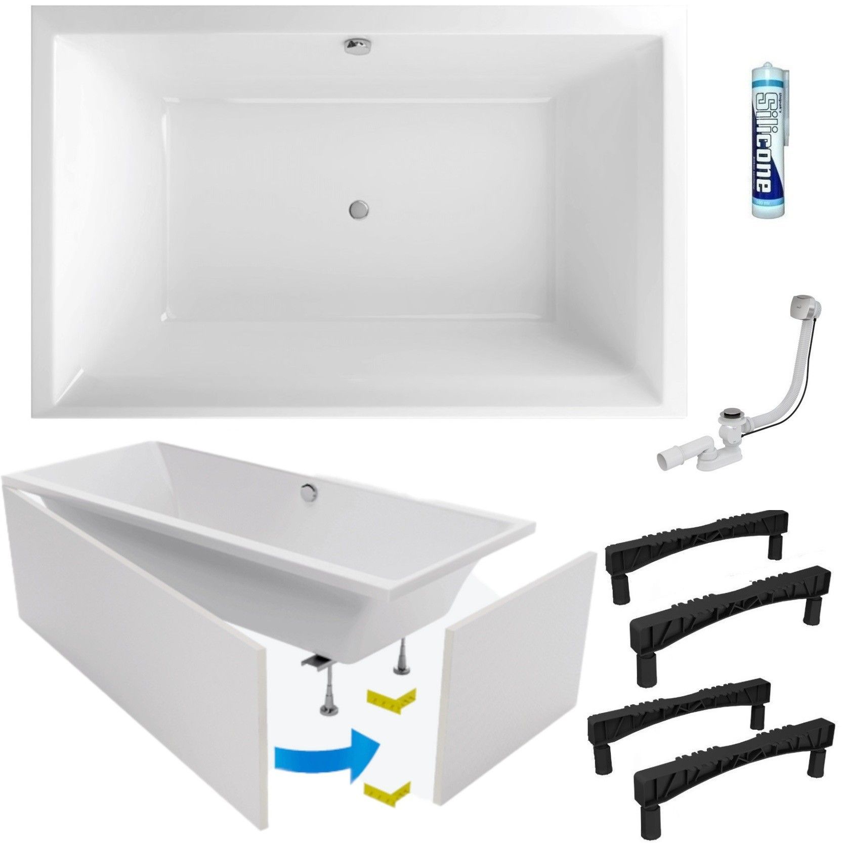 perfekte Acrylbadewanne Crown 190x120 cm für zwei Personen, Duobadewanne, TOP Qualität, 100% echtes Sanitäracryl im Set: Badewanne, Styroporverkleidung direkt zum Verfliesen, Ablaufgarntur, Silikon, Füße + Montagematerial. Kostenloser Versand innerhalb Deutschlands, 20 Jahre Herstellergarantie!
