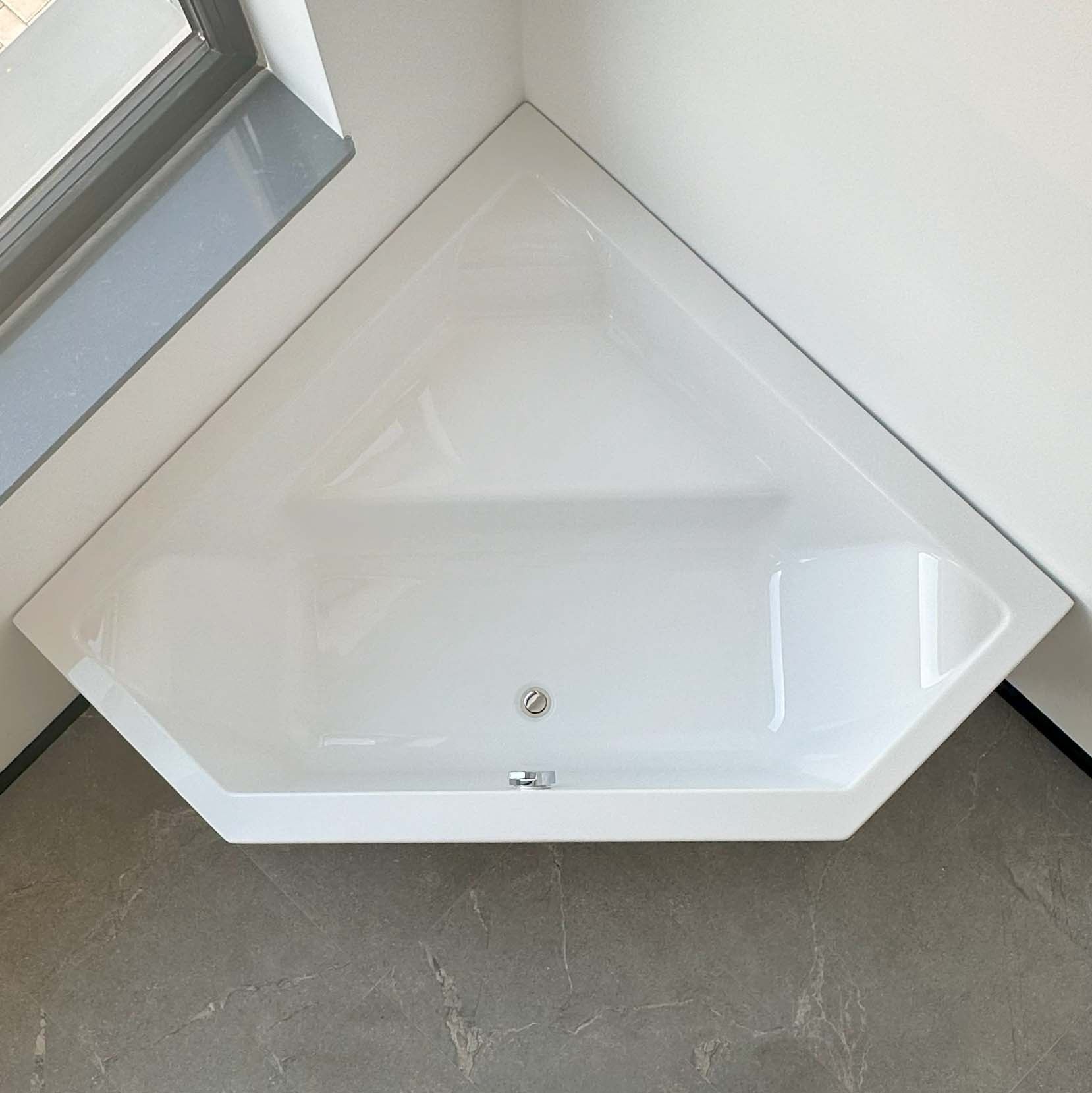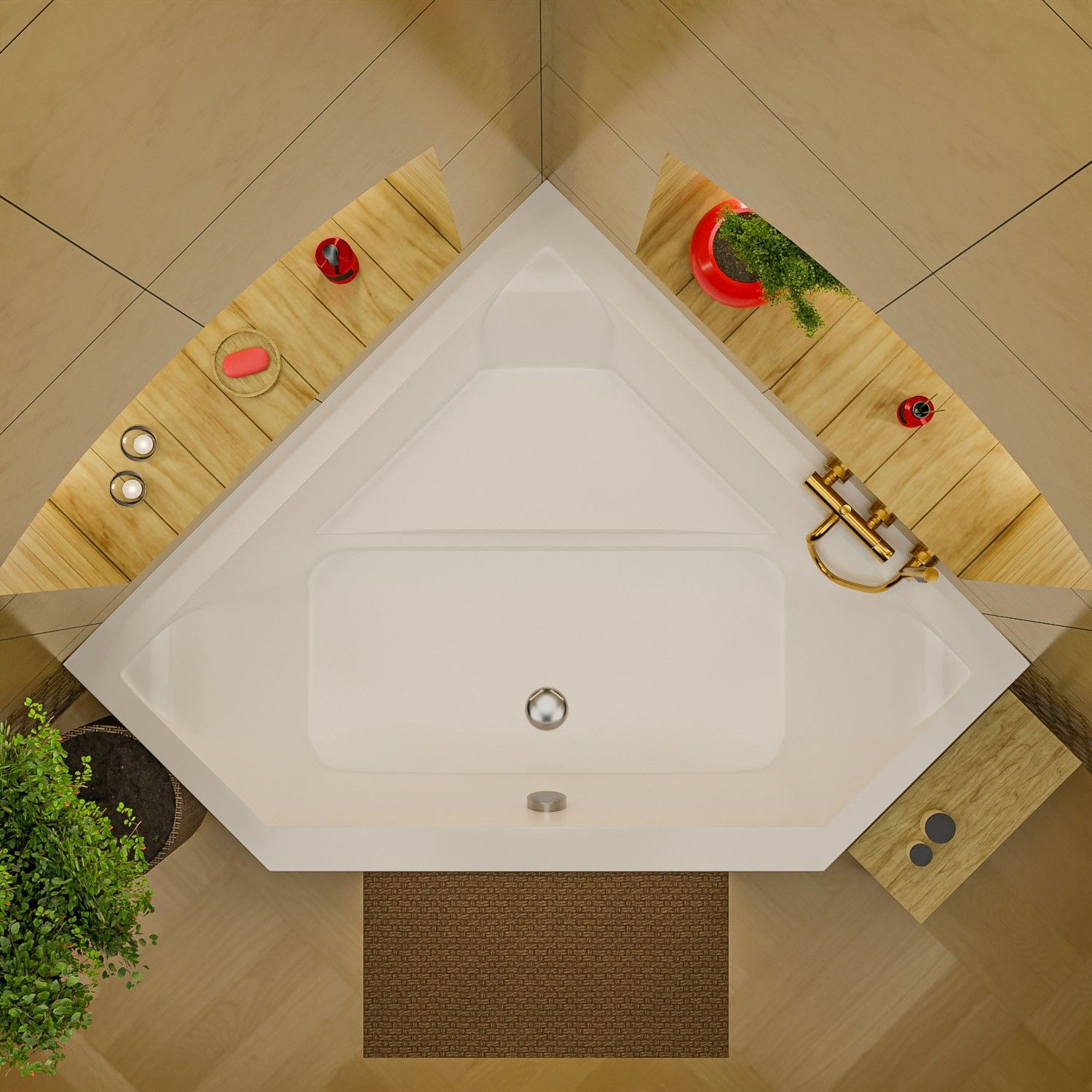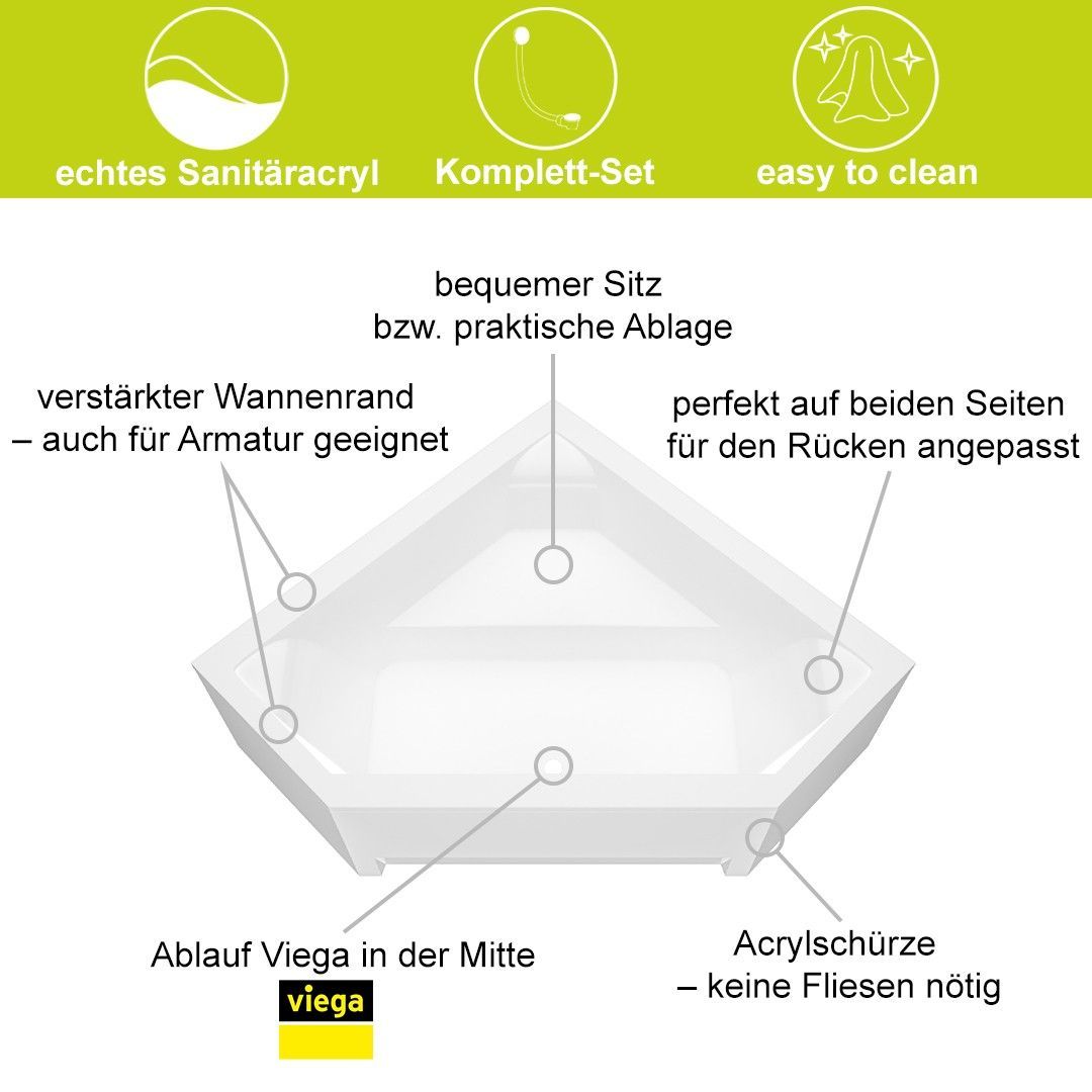 direkt vom Hersteller ECOLAM moderne Badewanne Irma 140x140 cm; echtes Sanitäracryl; IM SET: Eckbadewanne Irma 140x140 cm, Schürze, Siphon Viega, Silikon, Füße, Montagematerial; KOSTENLOSER VERSAND INNERHALB DEUTSCHLANDS 15 Jahre Herstellergarantie auf Badewanne